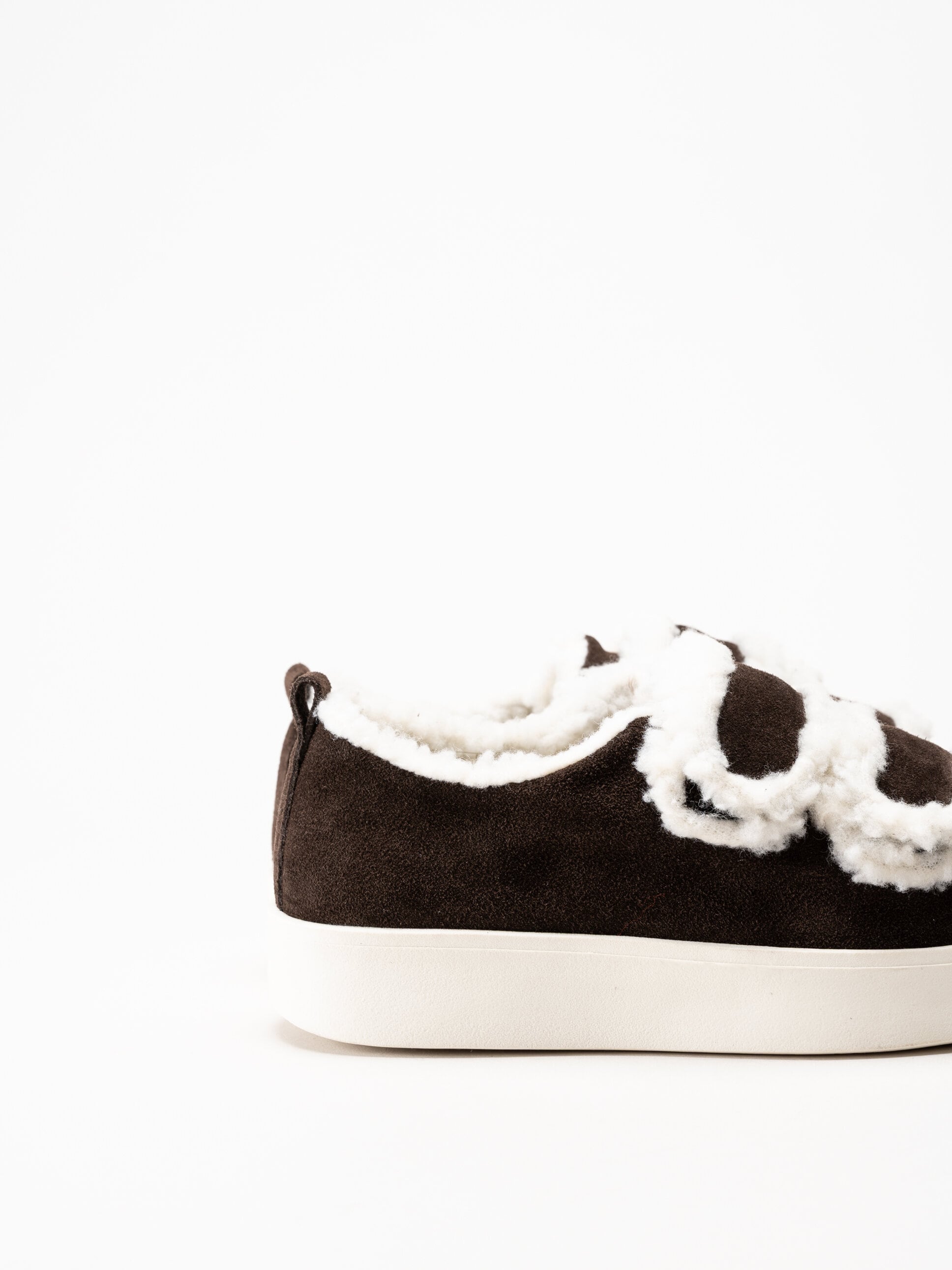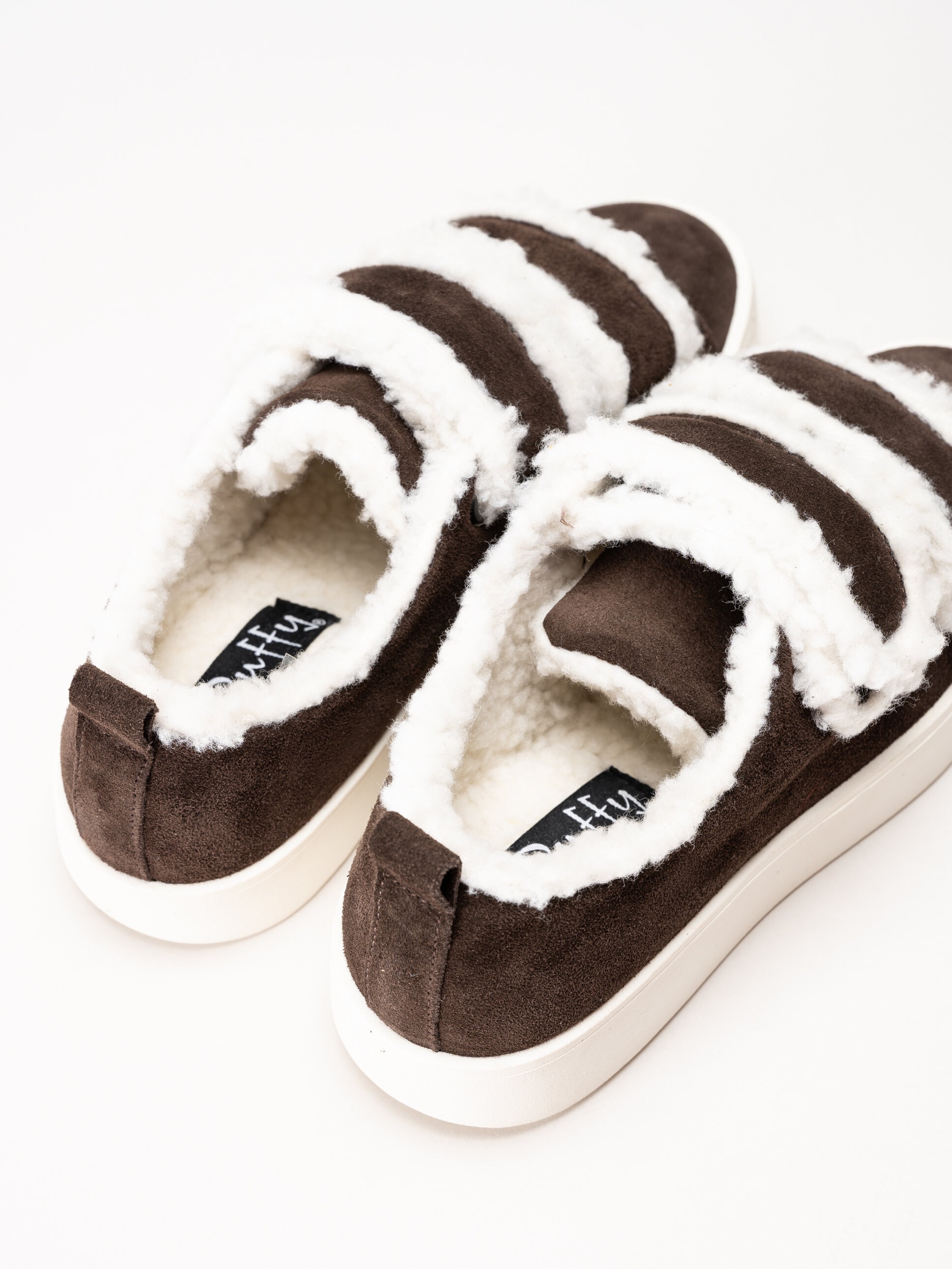 Mörkbruna sneakers i mocka Leuca Uno Dark Brown från Duffy. Mjuka och bekväma sneakers i mocka, designade för att ge både värme och komfort under svalare dagar. Insidan är fodrad med mjuk teddy pile som omsluter foten på ett behagligt sätt, och samma material används även i innersulan för extra värme och mjukhet.
