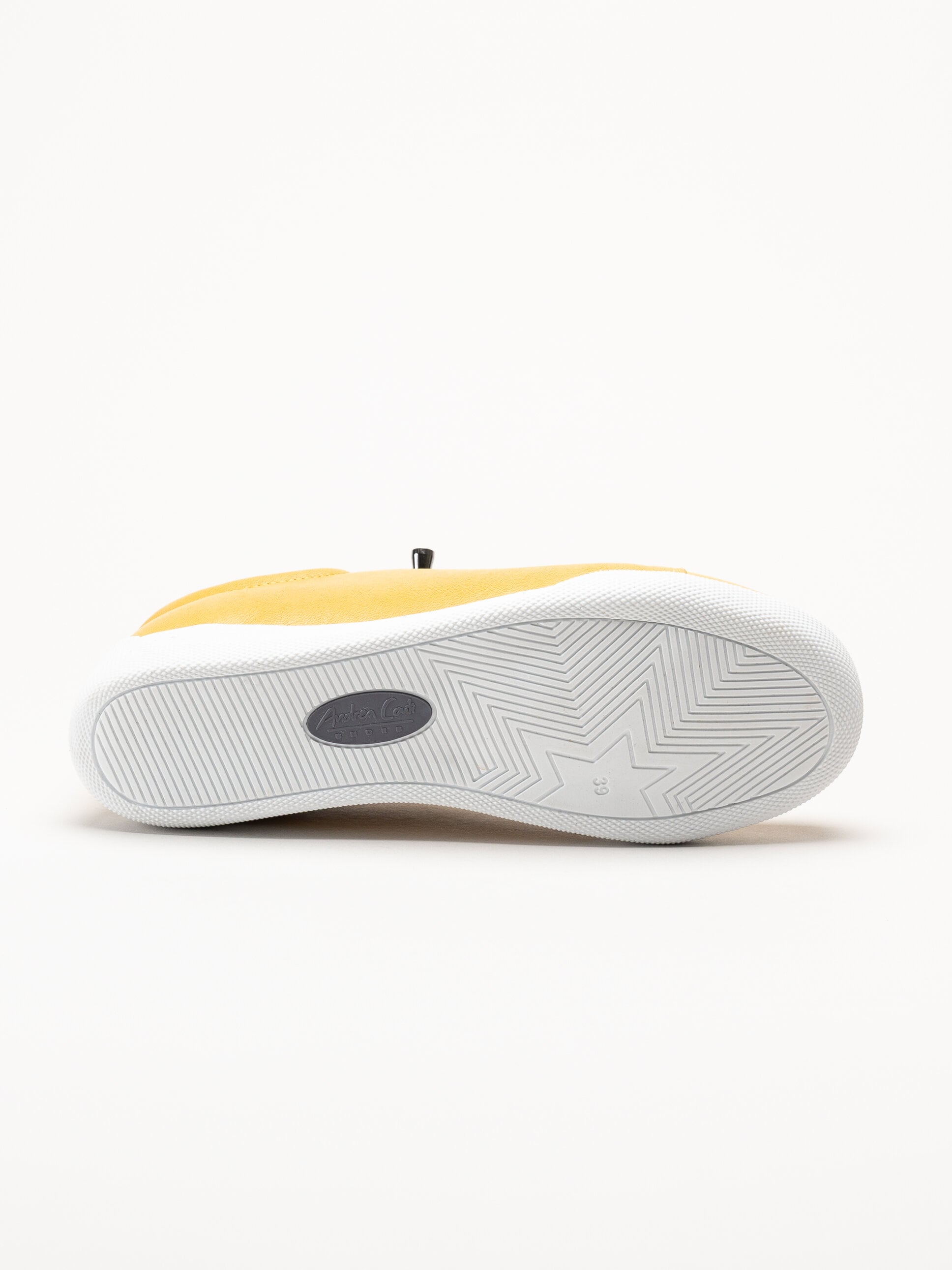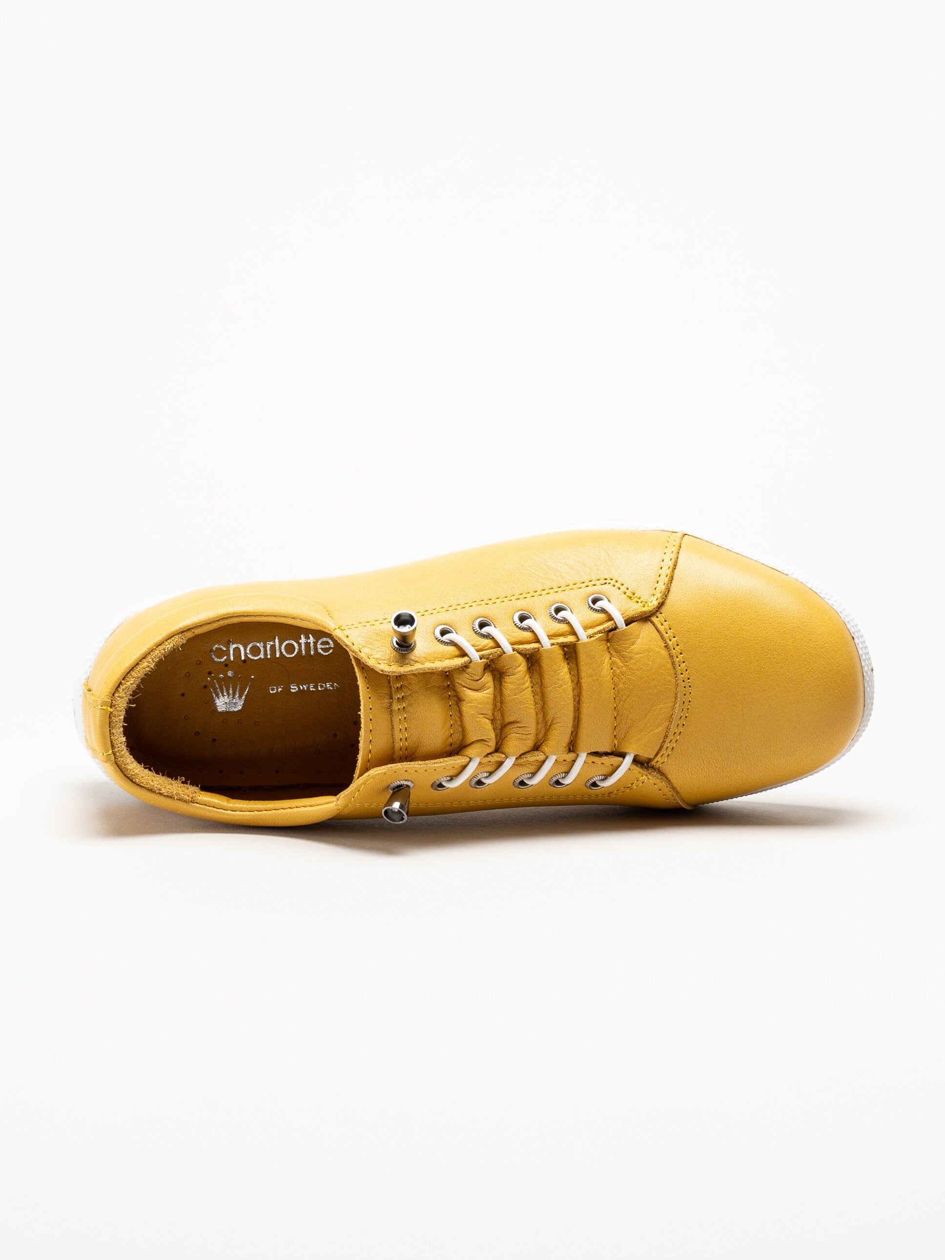 Gula sneakers i skinn från Charlotte of Sweden i färgen Curry. Skorna är tillverkade i mjukt och slitstarkt skinn som ger ett stilrent och tidlöst uttryck, perfekt för vardag och fritid. Den praktiska resårsnörningen framtill gör att skorna är enkla att ta på och av samtidigt som passformen hålls säker och bekväm.