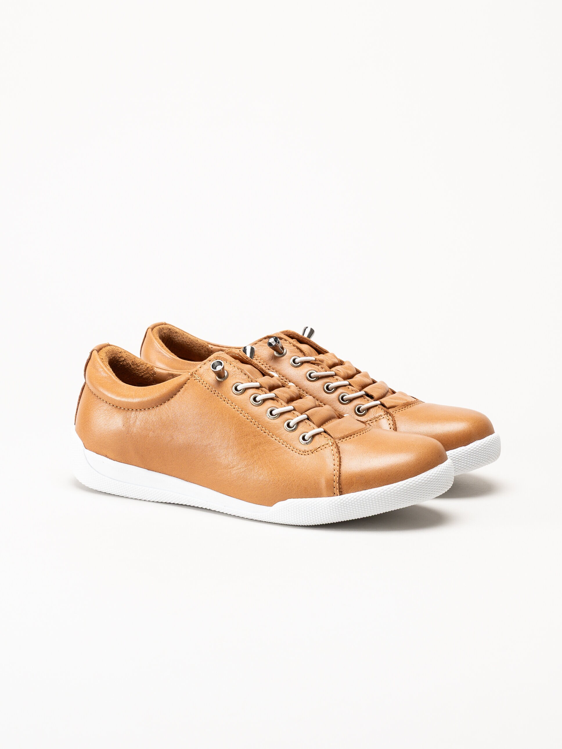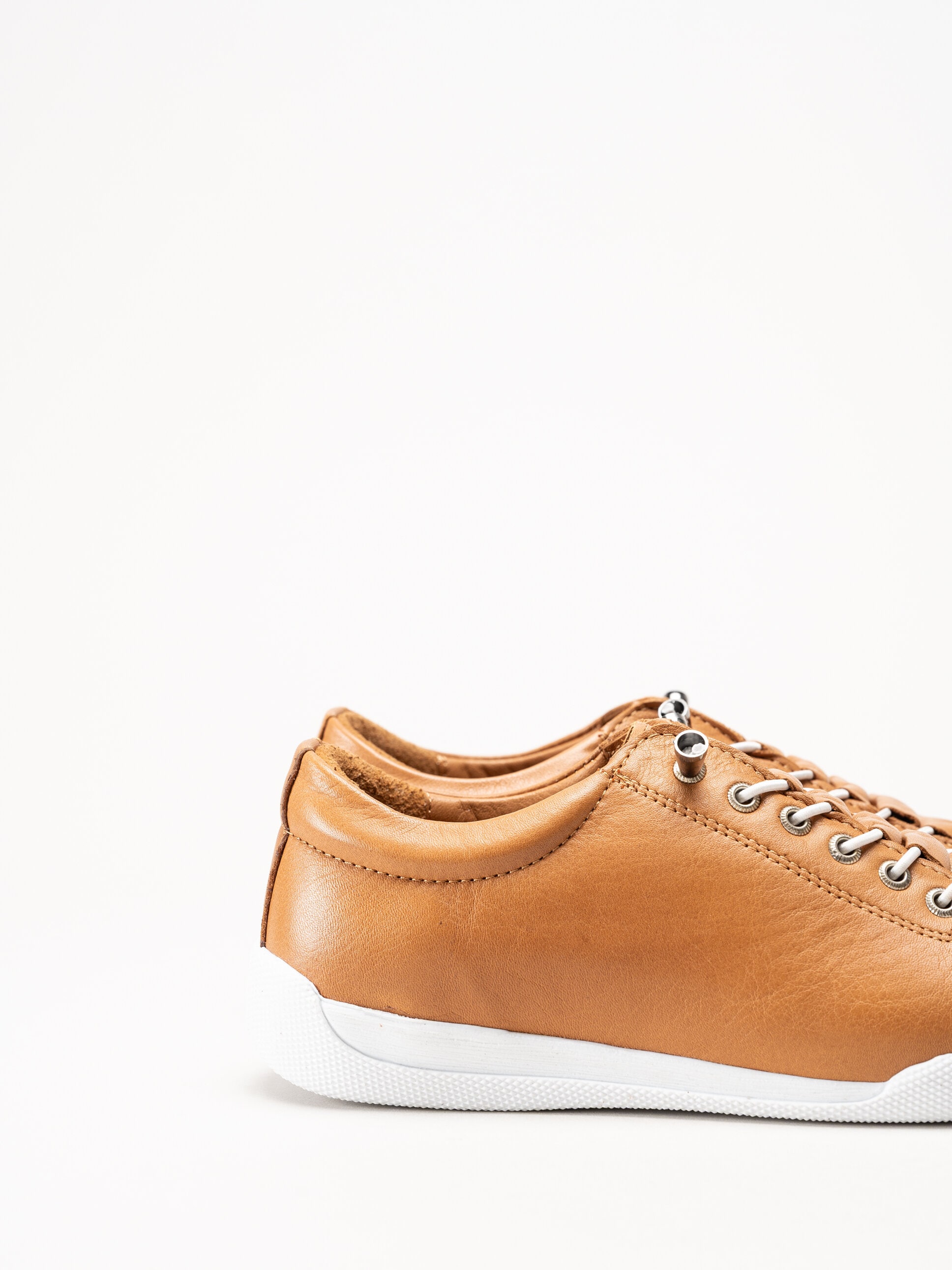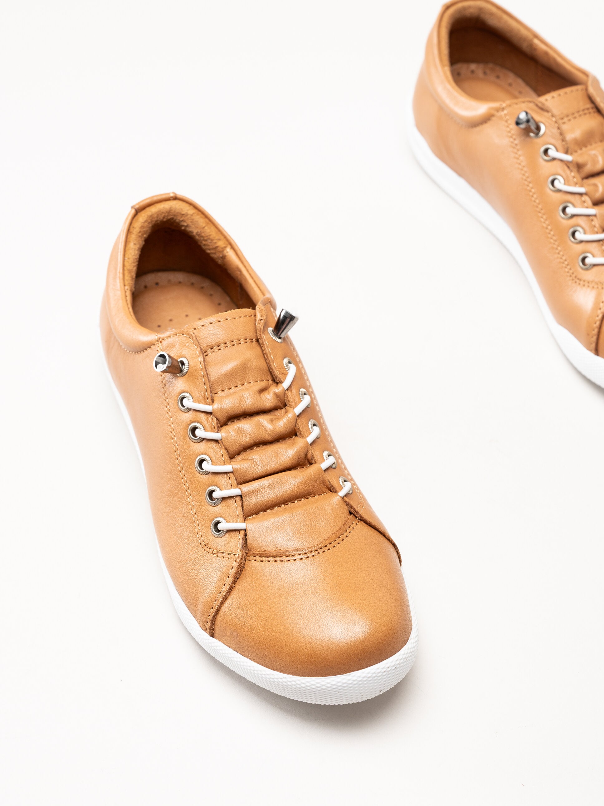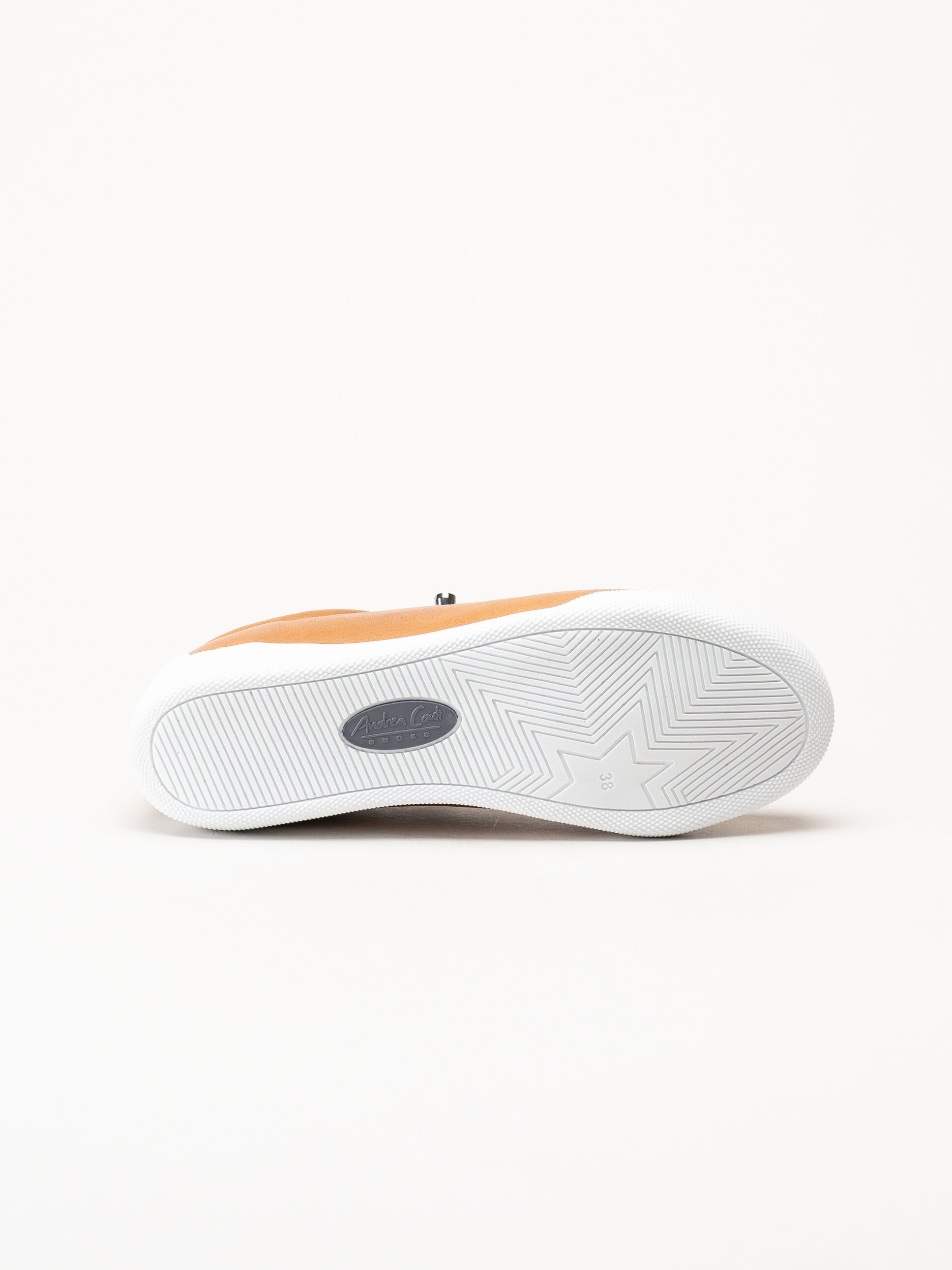 Ljusbruna sneakers i skinn från Charlotte of Sweden i färgen Cognac. Skorna är tillverkade i mjukt och slitstarkt skinn som ger ett stilrent och tidlöst uttryck, perfekt för vardag och fritid. Den praktiska resårsnörningen framtill gör att skorna är enkla att ta på och av samtidigt som passformen hålls säker och bekväm.