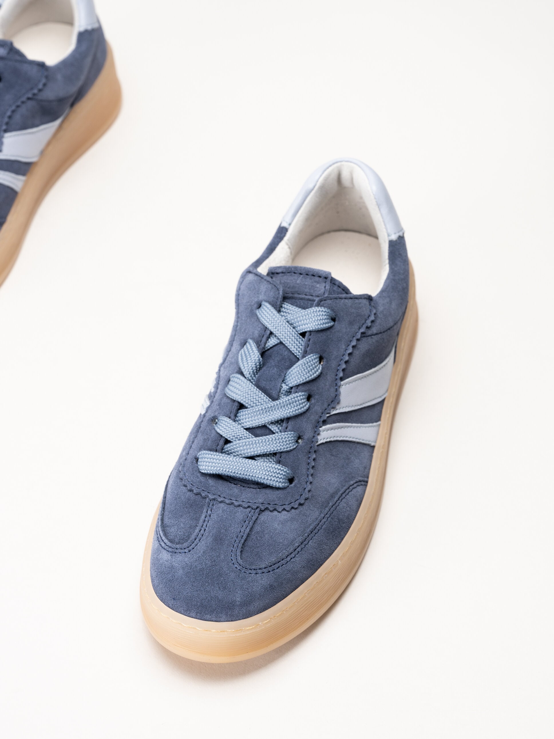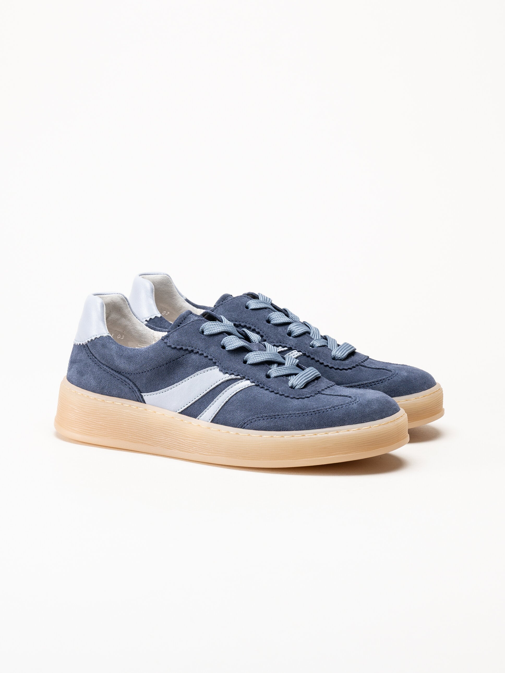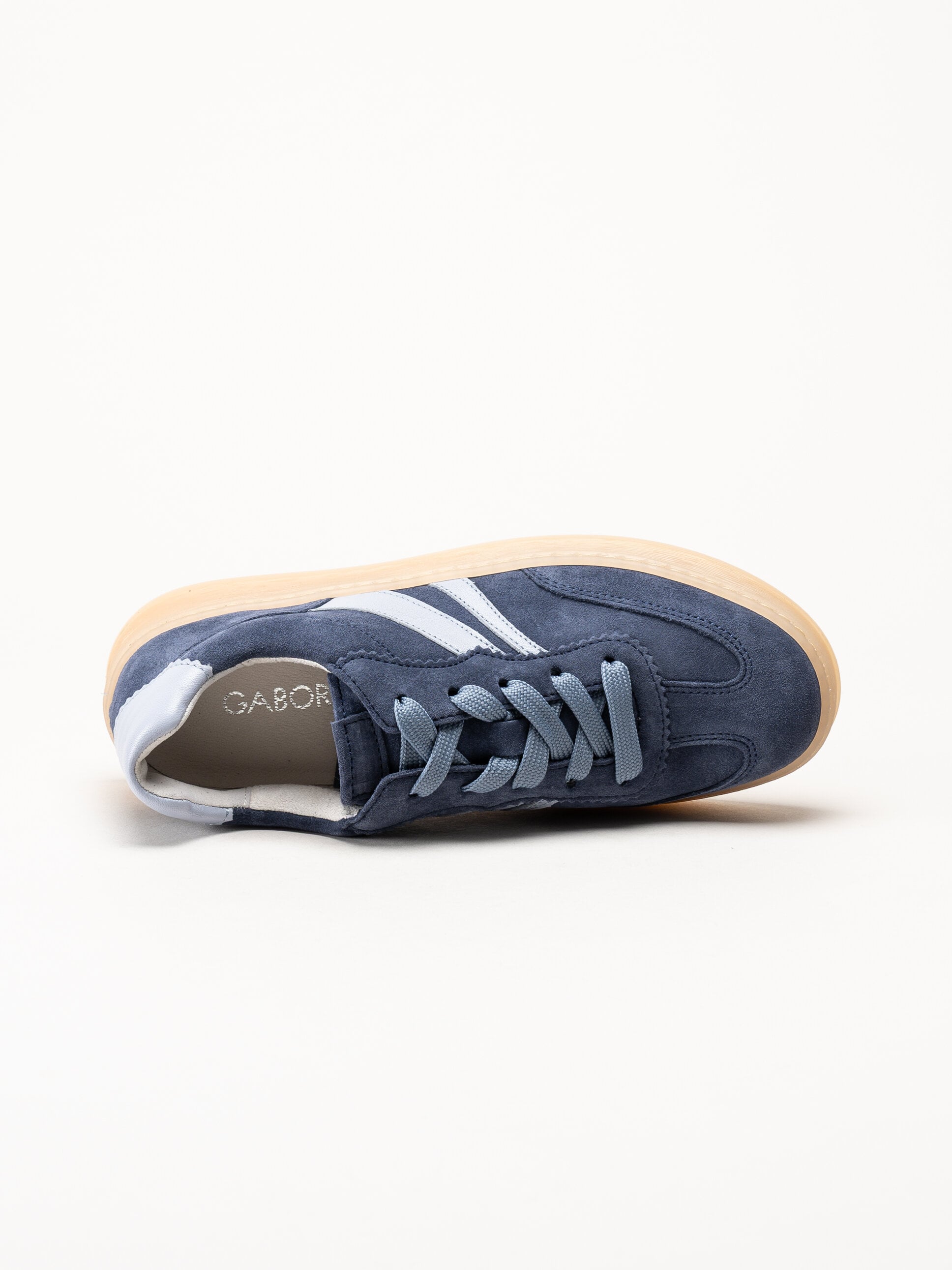 Blå sneakers i mocka från Gabor i färgen Jeans/Sky. Skorna är tillverkade i en kombination av mjuk mocka och skinn som ger ett stilrent och följsamt uttryck. Den klassiska snörningen framtill gör det enkelt att justera passformen för en stabil och bekväm känsla.