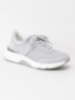 Ljusgrå promenad-sneakers från Rollingsoft Sensitive by Gabor i mocka och stickad mesh. Ljusgrå 5-håls klassisk snörning i bomull för att justera till skön individuell passform och mjukt fodrad plös. OptiFit praktisk löstagbar innersula klädd i skinn som känns riktigt skön mot foten. Insidan i skinn och textil. Yttersulan i gummi och syntet. Rollingsoft sensitive är sulan med unik flexibilitet. Den är superlätt och i flera lager vilket ger stöd och stabilitet under hålfoten. Den rullande sulan ger en skön övergång i varje steg utan att påverka balansen eller att det märks. Man går helt enkelt otroligt bekvämt. Är du ute och går mycket så är denna sko ett självklart val, en snygg klassiker som passar många fötter.