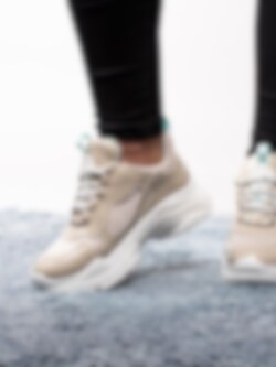 Happy Shoes - Happy Posh - Beige chunky sneakers i mesh och lack