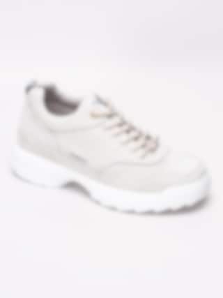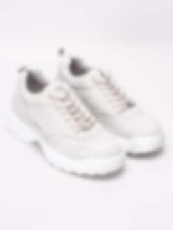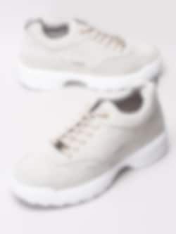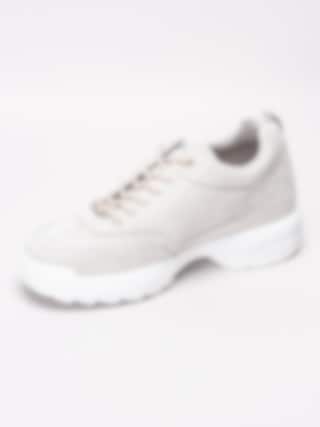 Ljusgrå sneakers Happy World från Happy Shoes är tillverkade i textil med ett 90-tals stuk. Präglad logga i mörkblått på utsidan och på plös. Beige snörning i polyester på 6 hål som öppning med smyckeslogga i silvermetall. Hälla på bakskaft som hjälpmedel vid påtagning. Ljusgrått foder och löstagbar innersula i textil. Vit tjock sula i syntet med klackhöjd på ca 4 cm och platå på ca 3 cm.