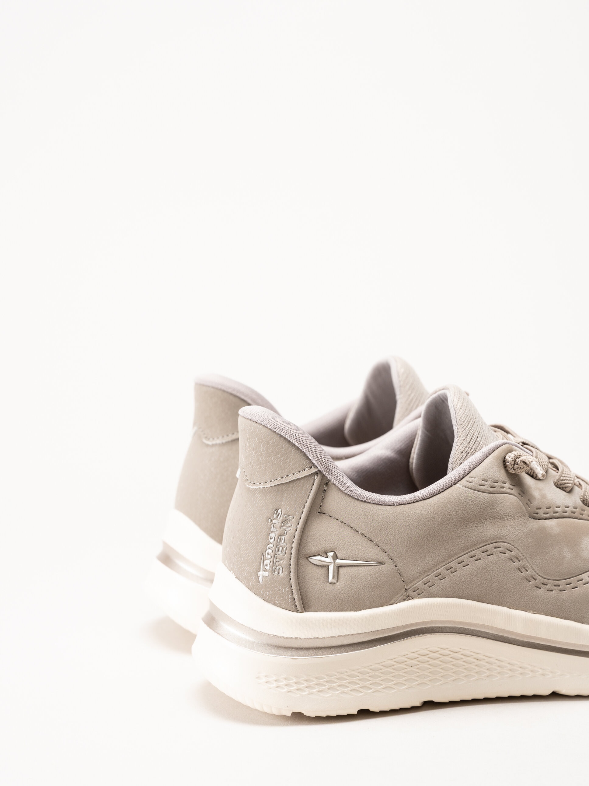Beige sneakers i skinnimitation från Tamaris Comfort i färgen Taupe. Skorna är tillverkade i lätt syntetmaterial som ger ett stilrent och följsamt uttryck. Modellen har en rymlig H-läst och step in-funktion, det flexibla materialet i bakkappan i kombination med elastiska snören gör skorna extra enkla att ta av och på, utan att kompromissa med komforten.