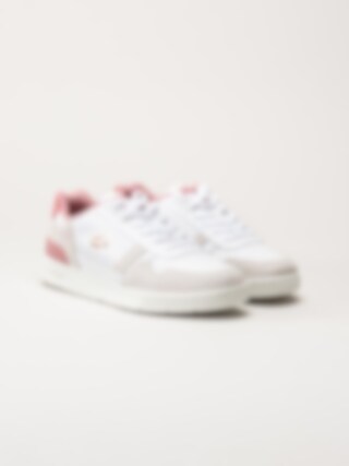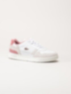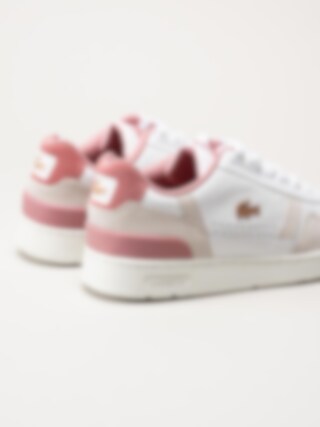 Lacoste - T-Clip - Vita skinnsneakers med rosa detaljer