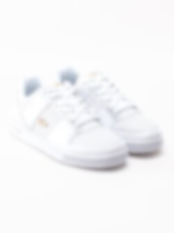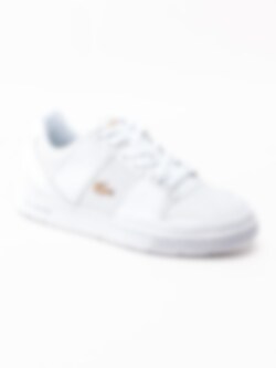 Vita tennis inspirerade sneakers Thrill från Lacoste. Ovandel i perforerat hålmönster som ger ventilation och ger en mjuk skön känsla mot foten. Plös med tryckt logga i guld. Snörparti med 4 st hål och 2 st med D ringar. Klassiska krokodilen i guld på utsidan för ett lyxigt uttryck. Tryckt logga i guld på bakkappan. Innersula i textil med tryckt logga i guld. Klassisk tennis sula med präglad logga på sidan. Fint präglat mönster och logga under yttersulan. Denna sneakers kommer fånga allas ögon med sina fina gulddetaljer.