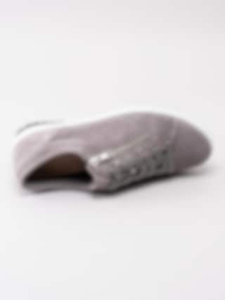 Mörkgrå snörskor Tanaro 4.0 fråm Legero tillverkade i mocka. Ljusa sömmar som detalj. Dragkedja i silver på utsidan som öppning samt grå glittrig snörning i bomull på 6 hål med öljetter i silver för att justera passform. Grått foder i textil och beige löstagbar innersula i skinn med sömlös logga. Vit mellansula med grå yttersula i syntet med randigt mönster och logga.
