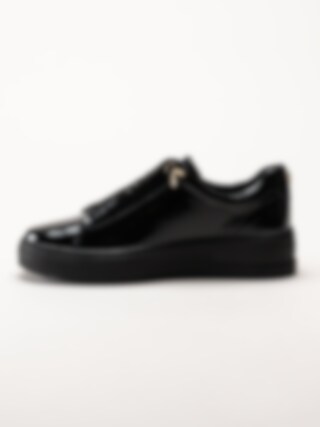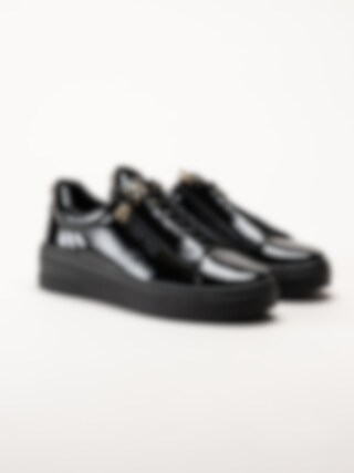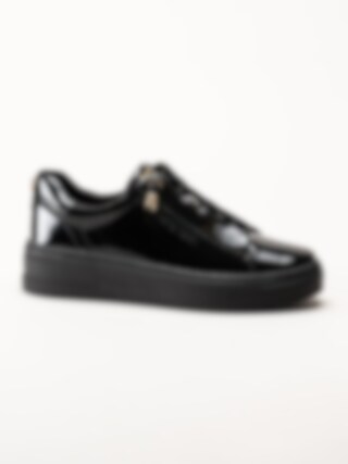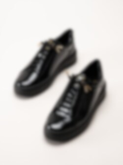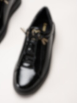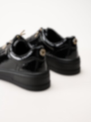 Marco Tozzi - Svarta sneakers i syntetlack med gulddetaljer