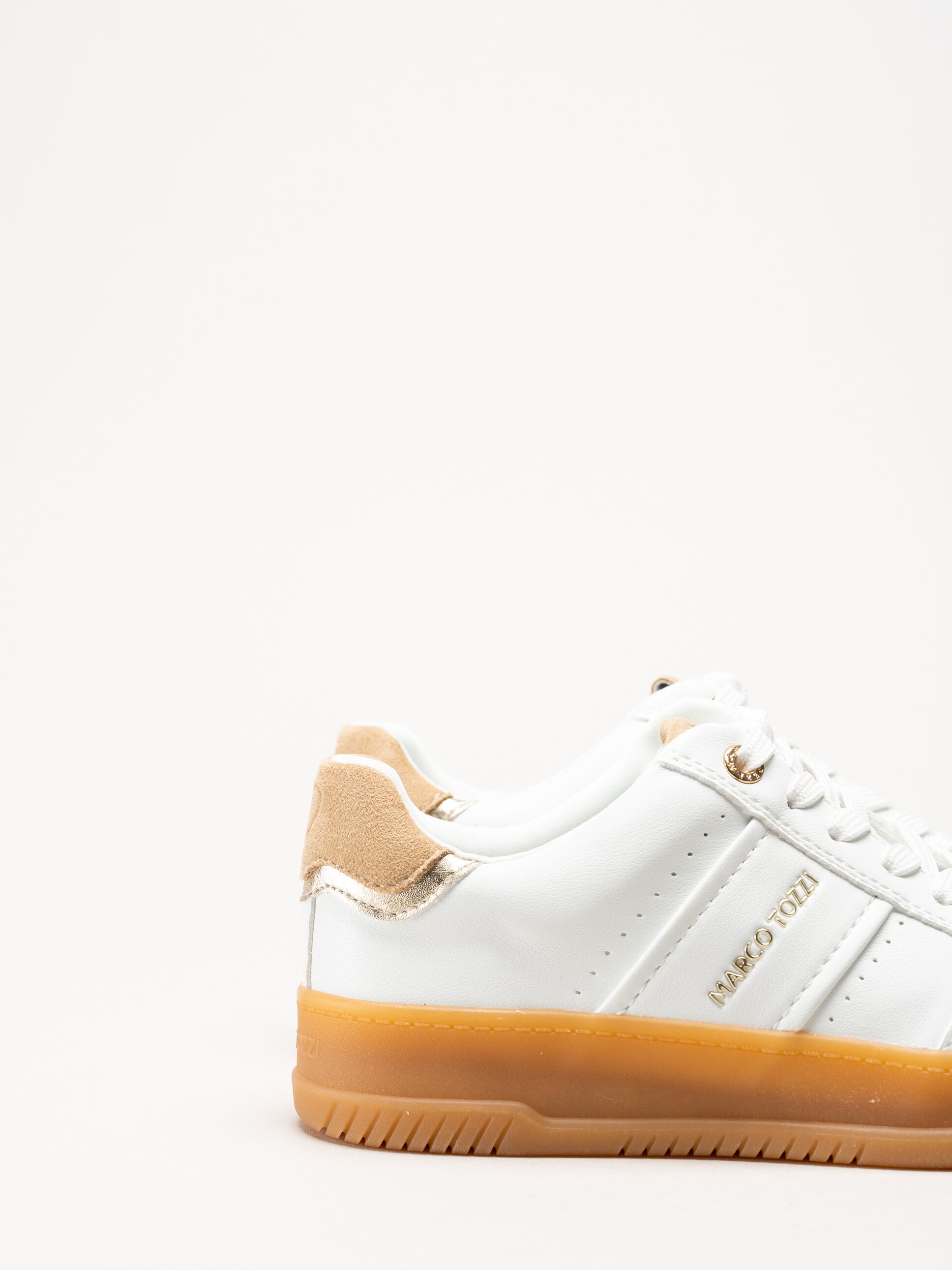 Vita sneakers i skinnimitation från Marco Tozzi i färgen White Combi. Skorna är tillverkade i syntet med ett stilrent uttryck som ger en modern och lättmatchad design. Den klassiska snörningen framtill gör det enkelt att justera passformen för en bekväm och stabil känsla.