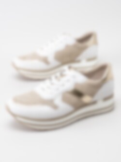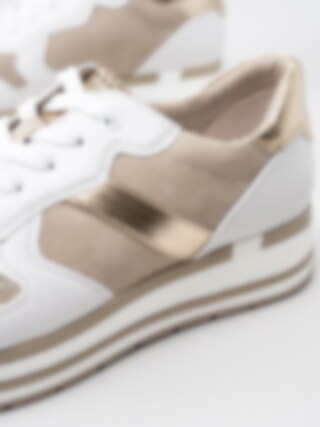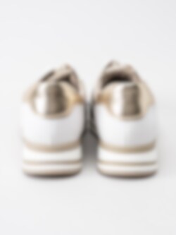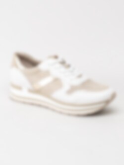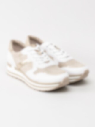 Vita sneakers med platå från Marco Tozzi med beige och guldiga detaljer.