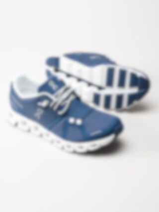 Blå sportiga sneakers i textil Cloud 5 från On. Ultralätta heldämpande skor perfekta för långa promenader som ger bra stöd runt vristerna och omsluter fötterna tätt, ovandelens sidor är förstärkta för att ge ytterligare stöd. Mellansulan med CloudTec®-teknik ger ökad stabilitet genom hela steget. Skorna är delvis tillverkade av återvunna material och hjälper därmed till att minska miljöpåverkan.