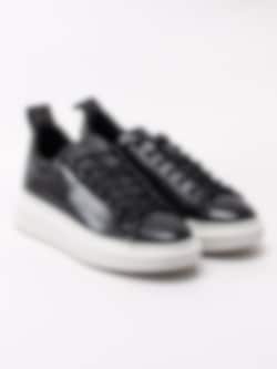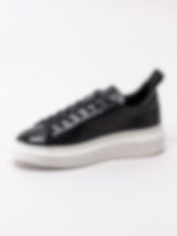 Svarta sneakers Dee från Pavement tillverkade i skinn. Platåsula och sömmar som detalj. Foder i mocka och löstagbar innersula i skinn. Brett band bak i hälen ger skorna en cool look. Perfekta att matcha till både fest och vardagsoutfit.