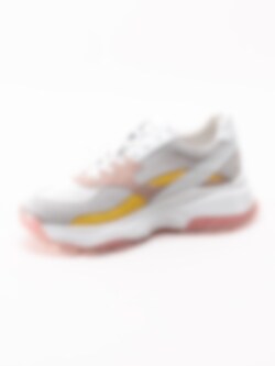 Vita flerfärgade sneakers Bianca från Philip Hog i skinn, mocka och mesh. Fin kombinerad chunky sneakers i olika material och färger som gifter sig med varandra. Plös i mesh med logga i guld på textil. 6 håls snörning för bättre passform. Uttagbar innersula i textil med logga. Skön hög chunky sula som ger bra komfort och fast grepp. En härlig sneakers nu till våren.