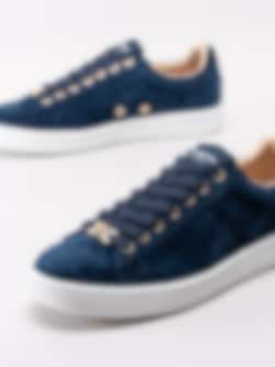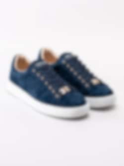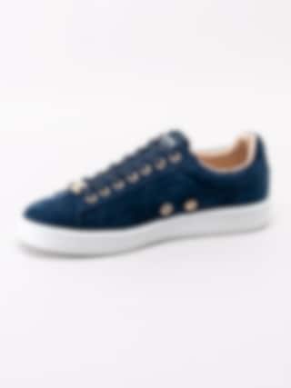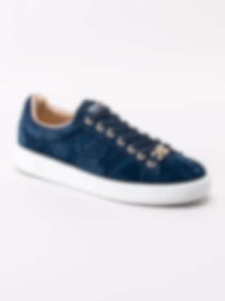 Philip Hog - Serena - Mörkblå sneakers i mocka med gulddetaljer