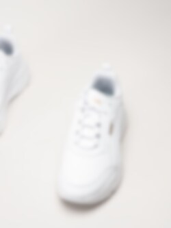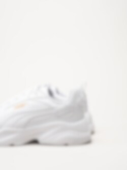 Vita sneakers i skinnimitation från Puma i färgen White Gold. Skorna är tillverkade i syntetmaterial som ger en lätt, sportig och modern look med mjuk känsla.