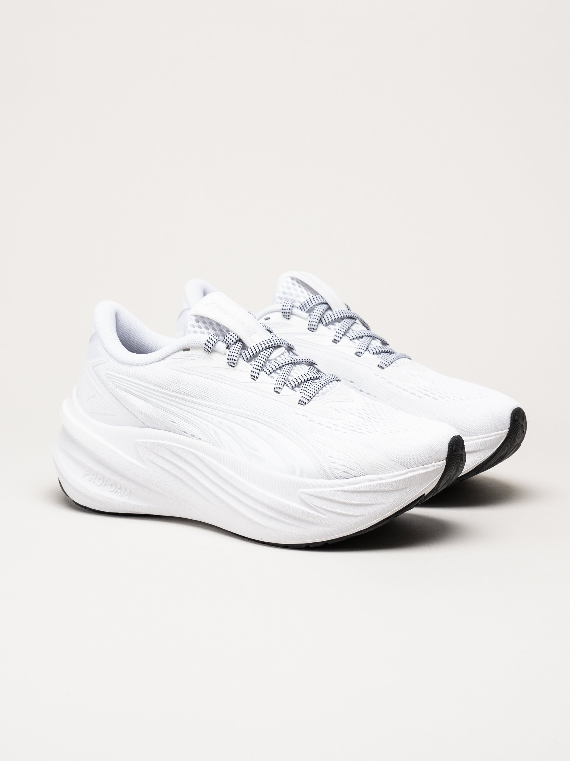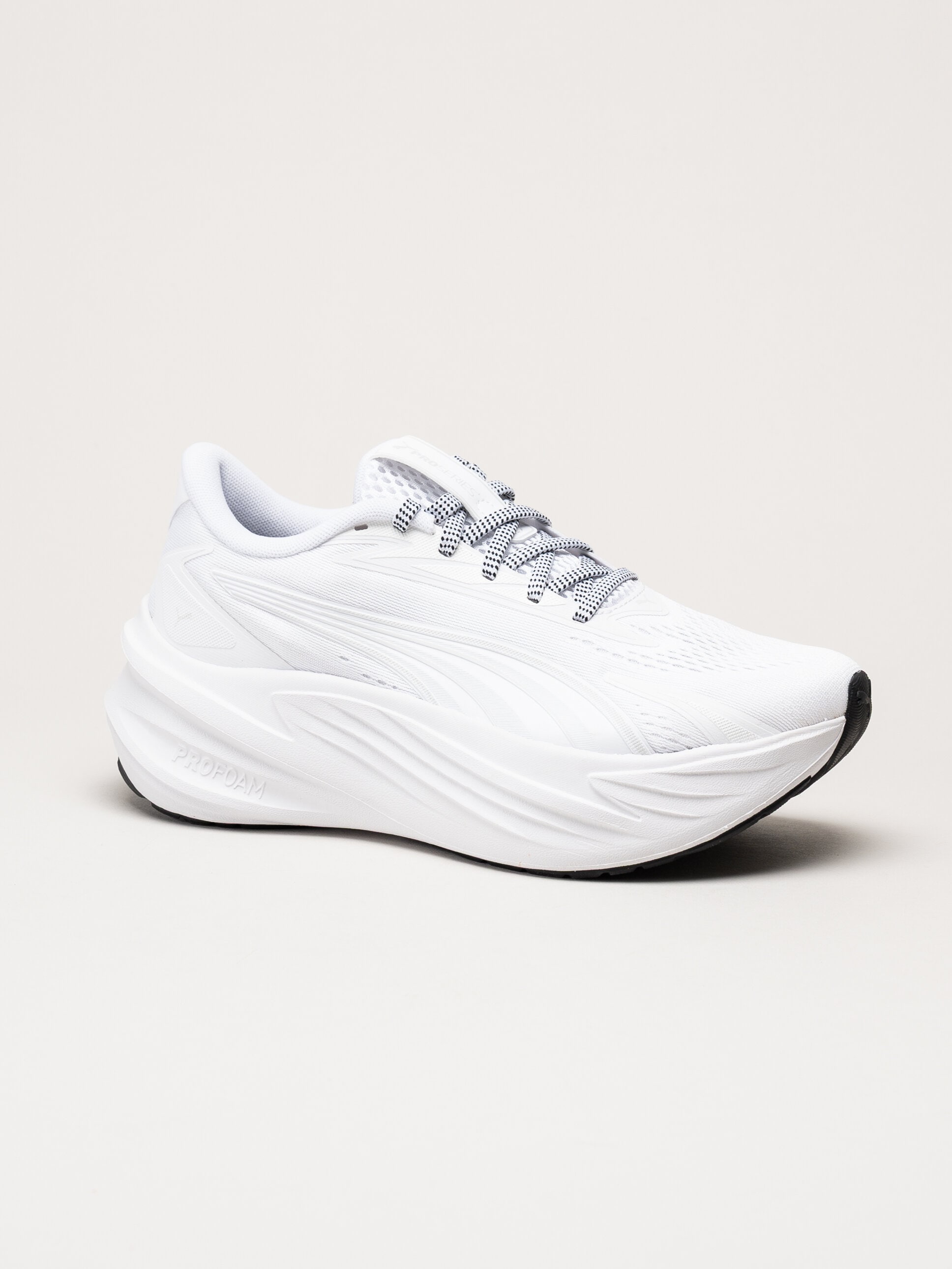 Vita sneakers i textil Maxima Pro från Puma i färgen White-Feather Gray-P. Skorna är tillverkade i en lätt och ventilerande kombination av textil och syntet som ger ett sportigt och modernt uttryck, perfekt för både träning och aktiv vardag.