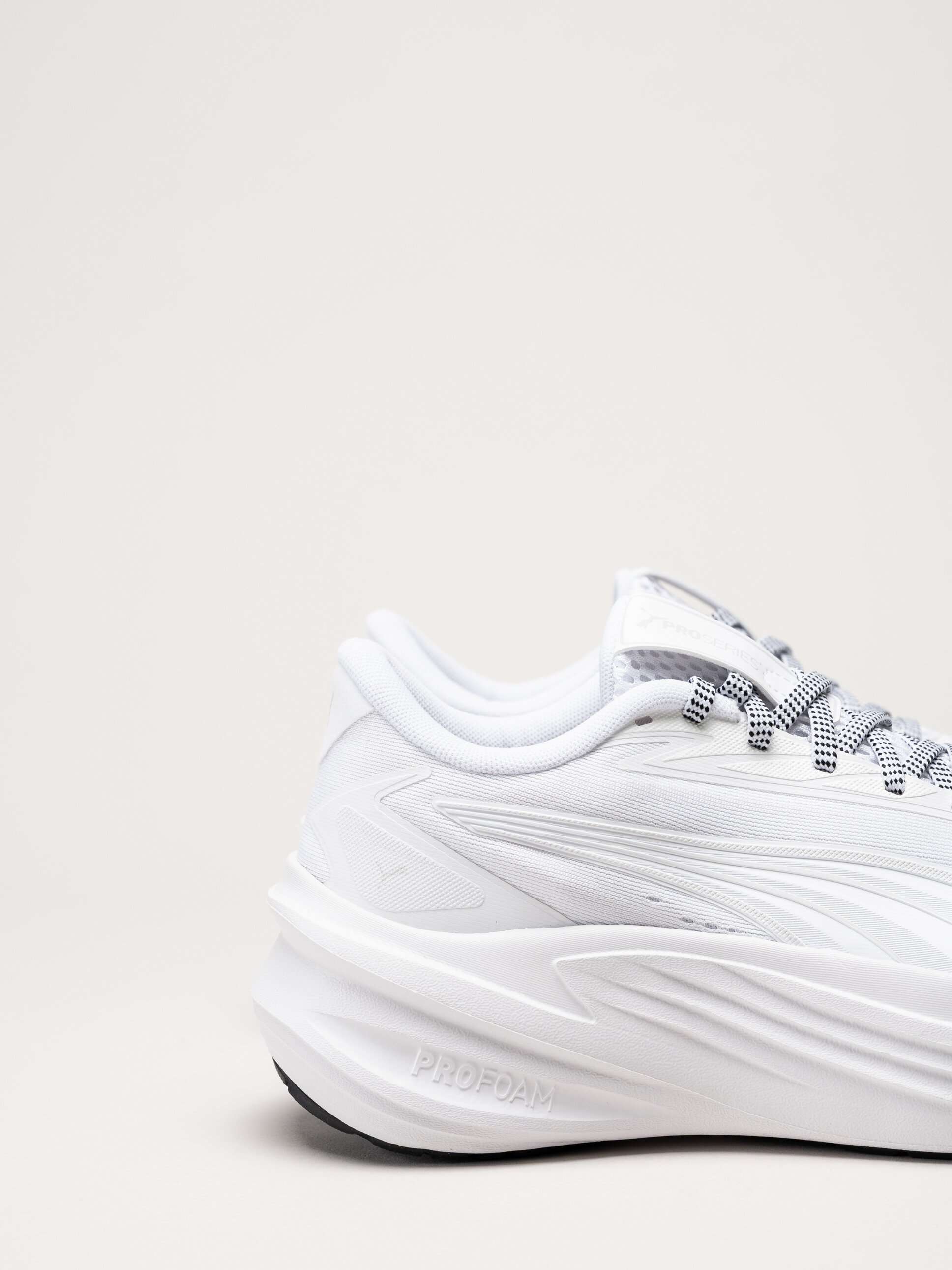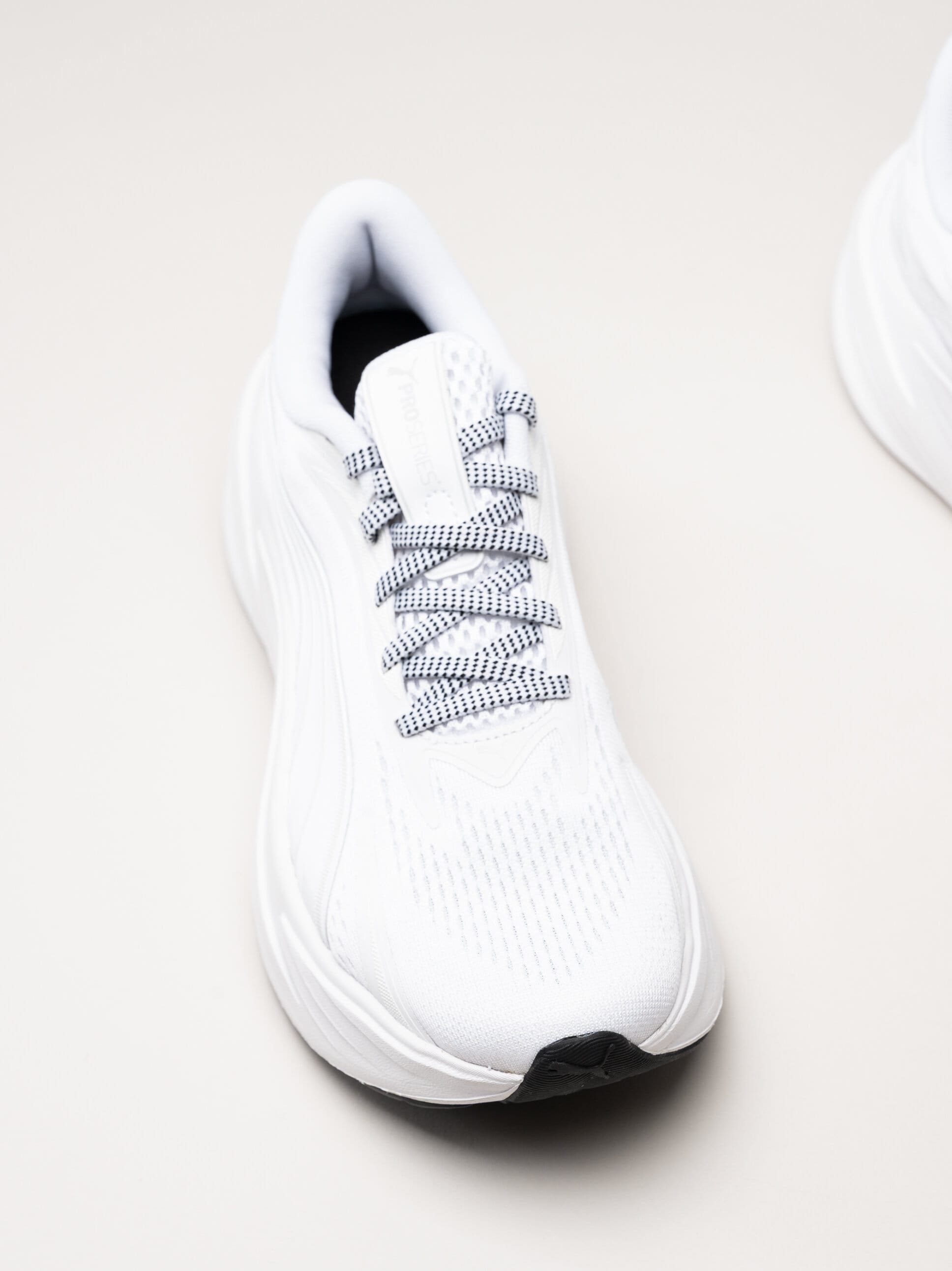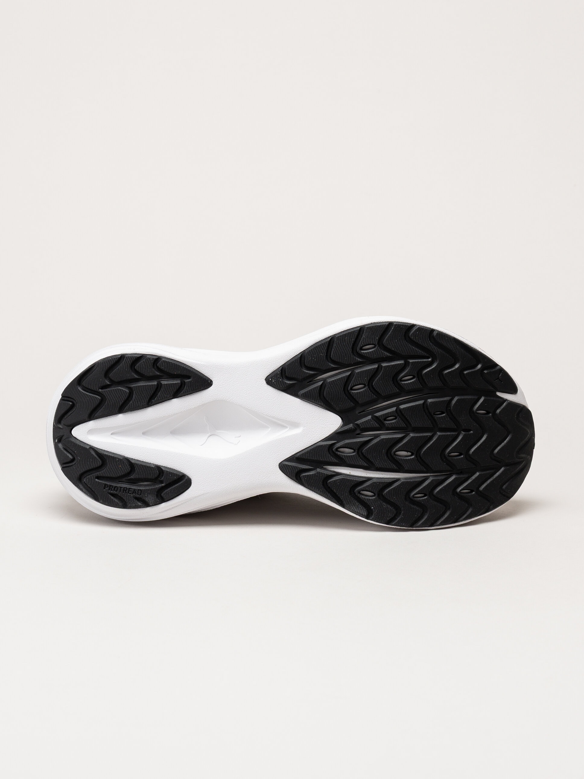 Invändigt är modellen fodrade med textil för en behaglig känsla mot foten, och den löstagbara innersulan i textil gör det enkelt att anpassa komforten eller byta sula vid behov. Med Pumas Profoam-mellansula får du effektiv stötdämpning och responsiv komfort, medan ProTread-yttersulan i gummiblandning och EVA ger bra grepp, slitstyrka och stabilitet på varierande underlag.