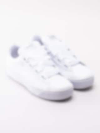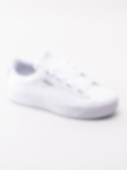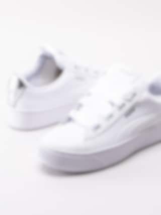 Vita sneakers Vikky Platform Ribbon från Puma tillverkade i syntet. Utrustad med SoftFoam innersula för ökad komfort. Sömlös PUMA formstrip på in- och utsidan. Logga i silver på utsidan och på plös. Vit 4-snörning i satin med rektangulära öljetter som öppning. Vitt foder och ljusgrå innersula i textil med sömlös logga. Vit platåsula på ca 3.5 cm med yttersula i gummi med rutigt mönster och logga.