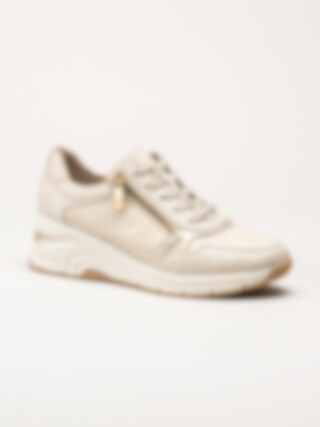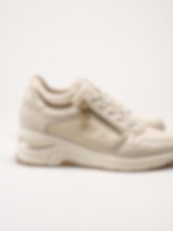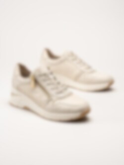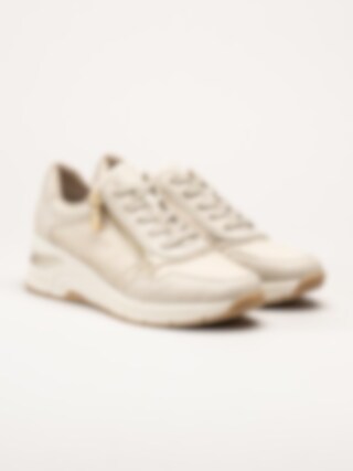 Rieker - Beige kilklackade sneakers i skinn