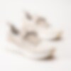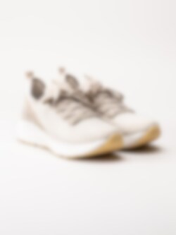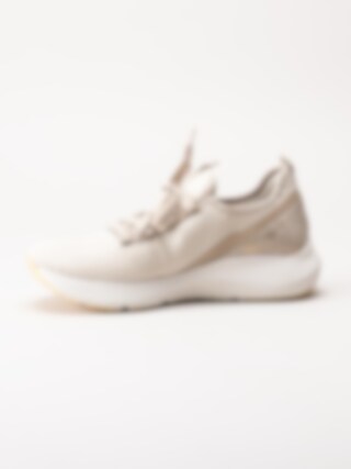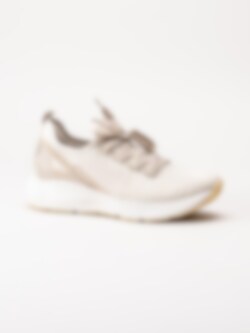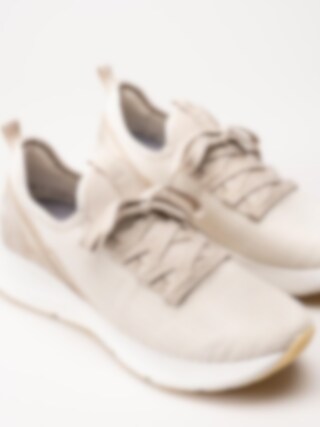 Beige sneakers i textil från från Rieker Evolution. En smidig slip on modell med dekorativ snörning, metallicfärgad mockaimitation på hälpartiet. Foder och löstagbar bekväm innersula i textil och en mönstrad yttersula i gummi för bra grepp. En nätt och lätt sneaker som är perfekt till sommarens härliga dagar!