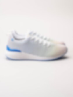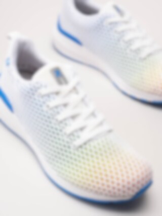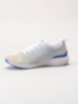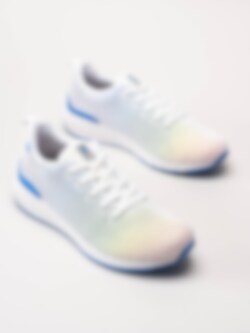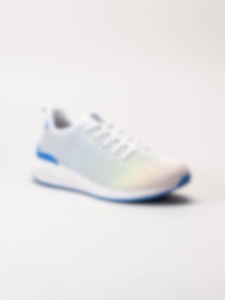 Vita och multifärgade sneakers Revolution by Rieker. Lätt sportsko i textil med vit färg som bas och med regnbågens färger under den perforerade textilen. Snörparti med 5 hål, vadderad plös och kant som är skönt mot foten. Uttagbar innersula Rieker Evolution Soft i textil för bra komfort. Vit mellansula och blå slitsula i gummi. En nätt och lätt sneaker som är perfekt till sommarens härliga dagar!