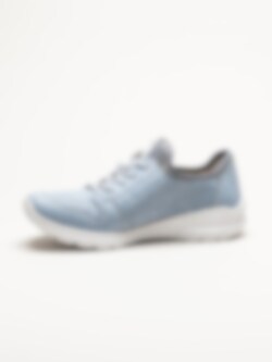 Ljusblå slip on skor från Rieker i färgen Lightblue-Silver. Skorna är tillverkade i lätt och lättskött syntet som ger ett stilrent och modernt uttryck. Den elastiska snabbsnörningen gör dem enkla att ta på och av samtidigt som passformen justeras smidigt efter foten.