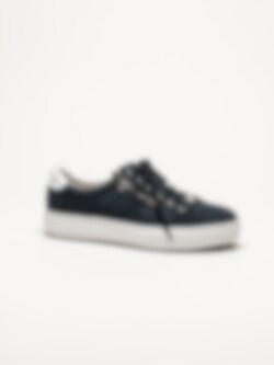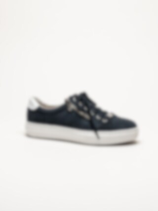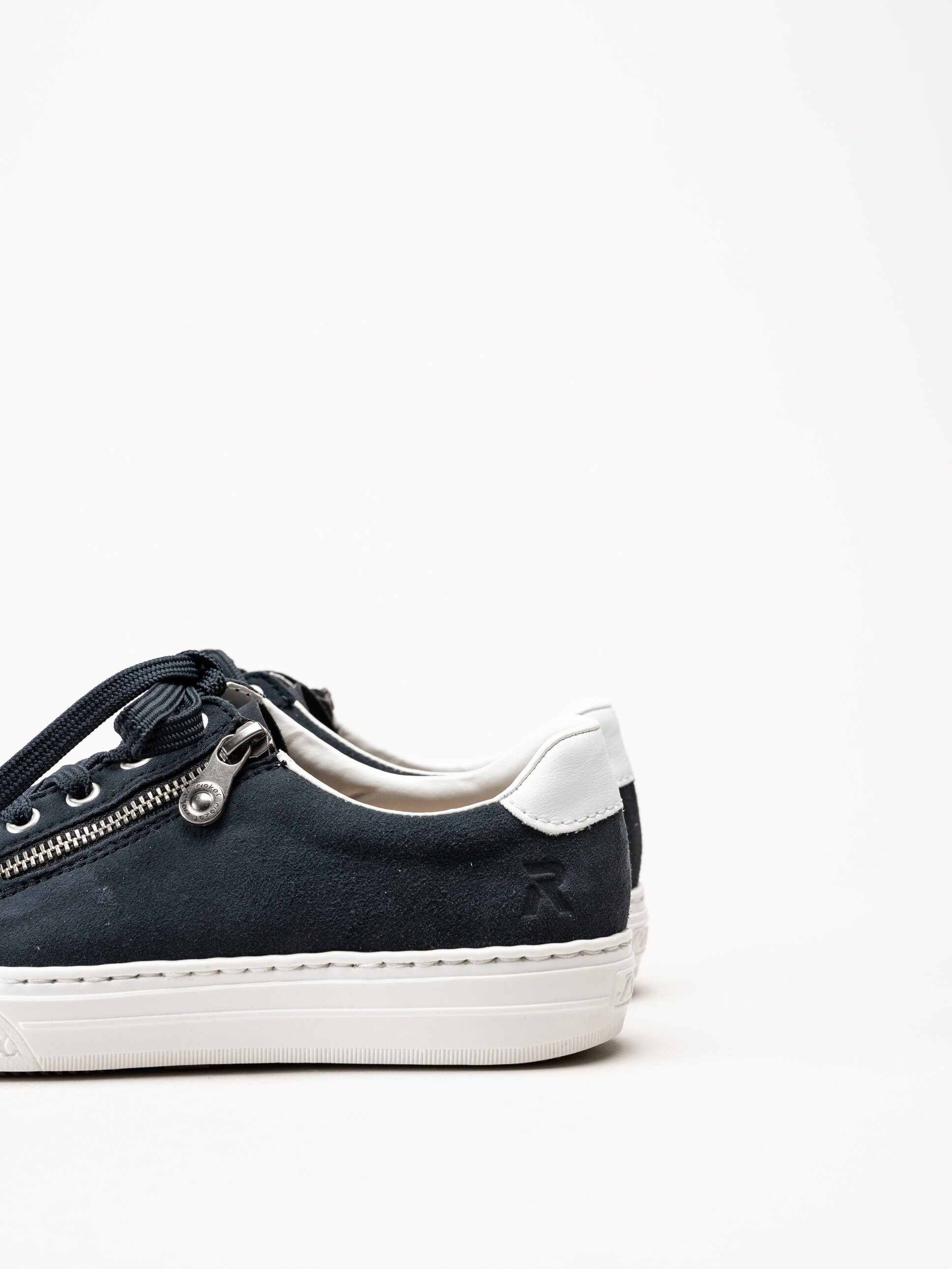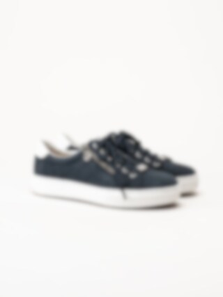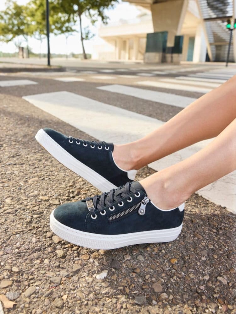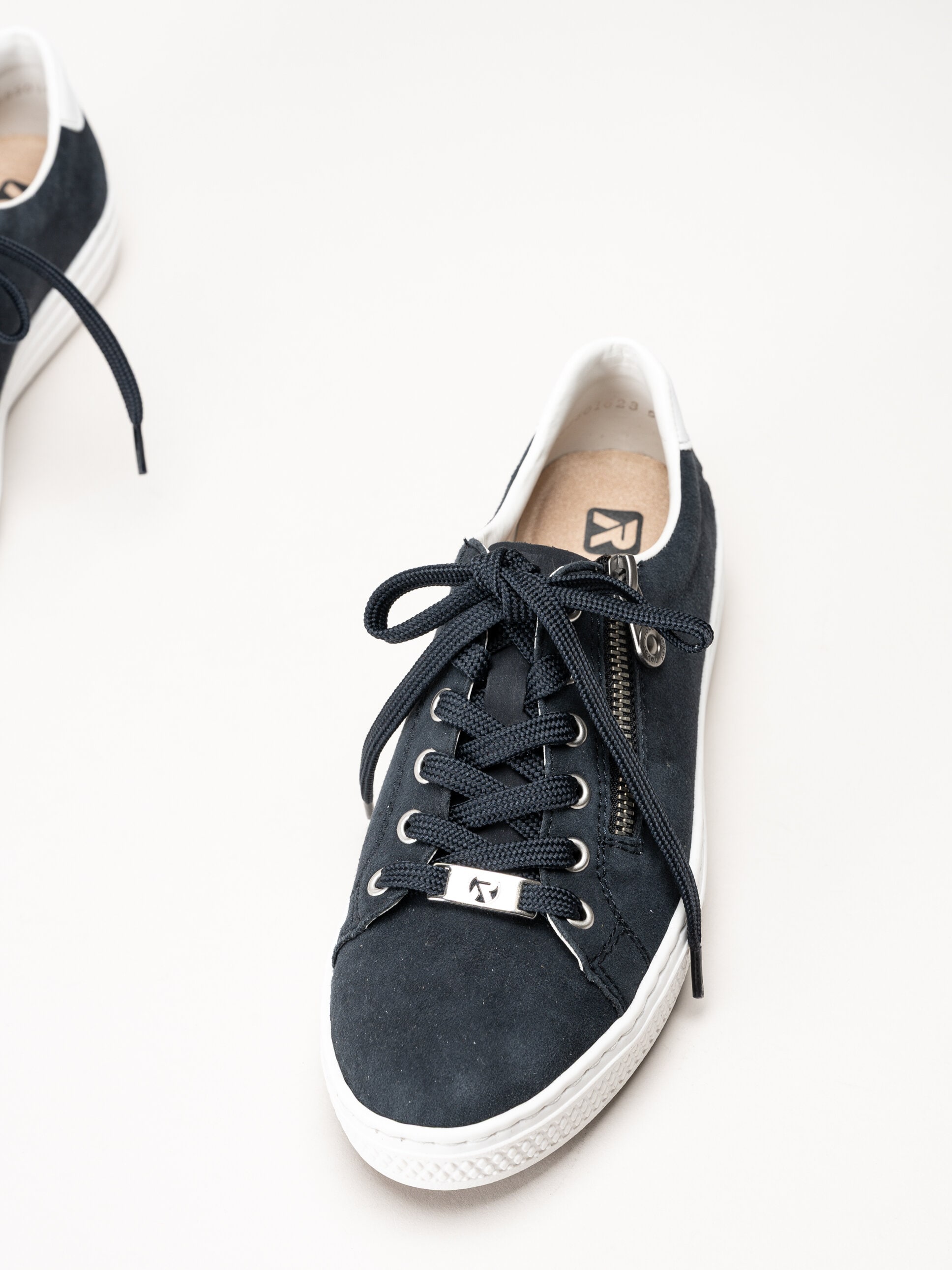 Mörkblå sneakers med dragkedja från Rieker i färgen Pazifik. Skorna är tillverkade i mjuk mocka som ger ett stilrent och klassiskt uttryck. Den traditionella snörningen framtill gör det enkelt att justera passformen, medan dragkedjan på utsidan gör dem smidiga att ta på och av i vardagen.