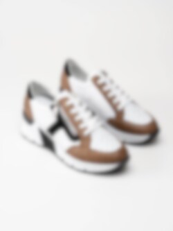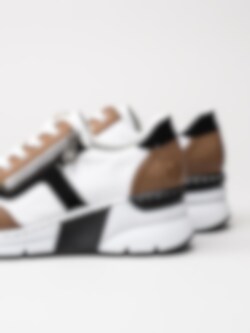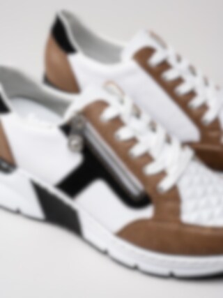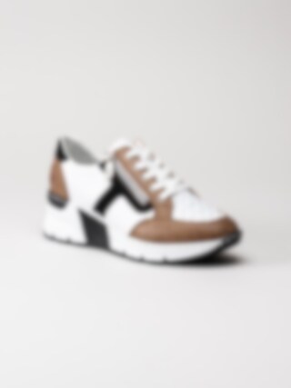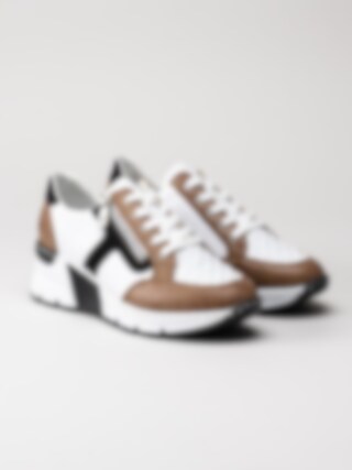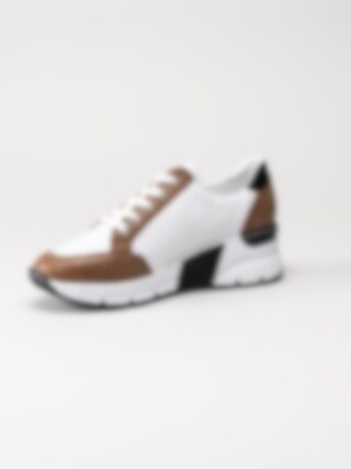Rieker - Vita kilklackade sneakers med bruna och svarta partier