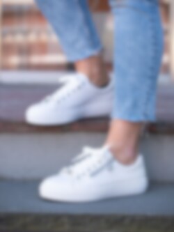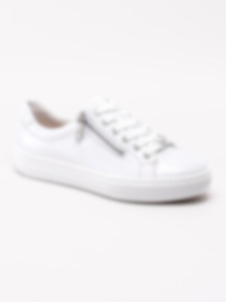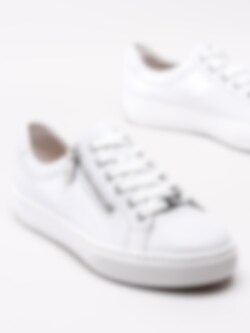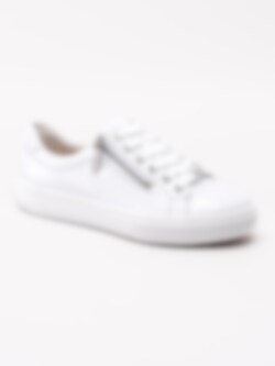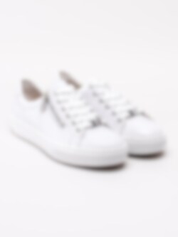 Vita sneakers i skinn White från Rieker. Upptäck Rieker vit sneakers - den perfekta kombinationen av stil, komfort och funktionalitet. Dessa sneakers är tillverkade i mjukt, vitt skinn och har en trendig design med sexhåls snörning och öljetter, samt en praktisk dragkedja i silver på utsidan för enkel av- och påtagning. Dragkedjan ger både en modern touch och gör det snabbt och smidigt att ta på sig skorna när du är på språng. Innersulan, som är utrustad med memory foam, ger en extra nivå av komfort och anpassar sig efter din fot för att hålla dig bekväm hela dagen. Den klassiska sneakerstilen passar perfekt till både avslappnade och mer stiliga outfits. Yttersulan i gummi ger ett bra grepp på olika underlag. Rieker sneakers är det självklara valet för den som söker en bekväm, funktionell och stilren sko som passar i alla situationer.