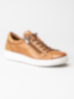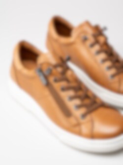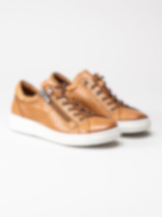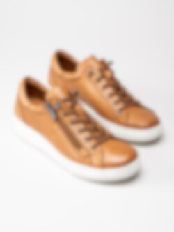 Ljusbruna sneakers tillverkade i skinn från Rosa Negra. Foder och löstagbar innersula i skinn för god komfort.