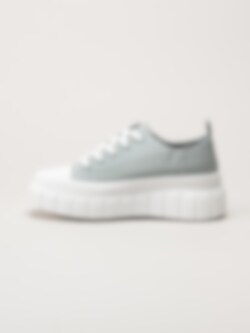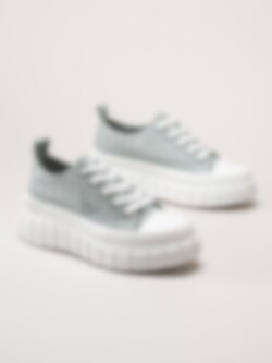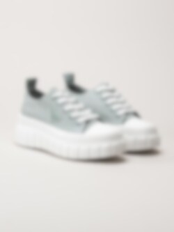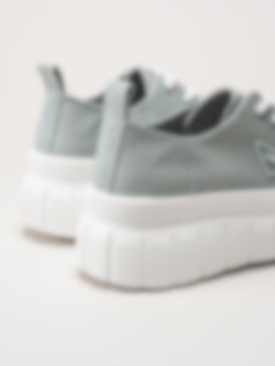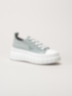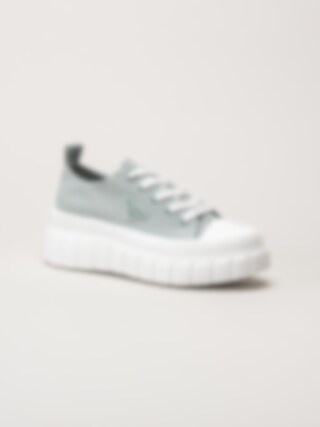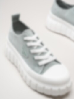 Ljusgröna chunky sneakers i textil från s.Oliver. Trendiga canvas sneakers med en grov lättviktssula som är räfflad runtom sulkanten. 5-håls snörning med gröna öljetter och vita skoband i bomull. Foder och löstagbar innersula i textil. En somrig modell som passar perfekt med ett par jeans eller en kort kjol.