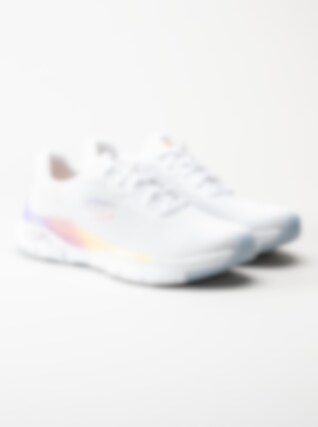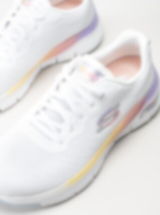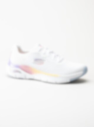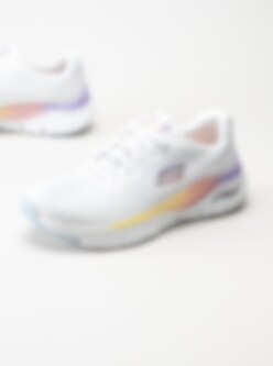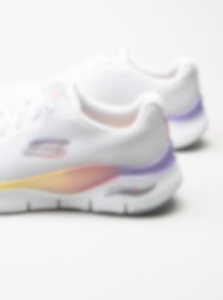 Vita flerfärgade sportskor Arch Fit från Skechers tillverkade i textil. Utrustad med Arch Fit sul-system som gör att du får bra stöd under foten. Textilfodrade med löstagbar innersula i Air cooled textil.