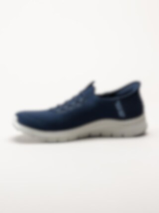 Blå slip on sportskor Arch Fit Vista Aspirition i färgen Navy från Skechers. Utrustad med Arch Fit sul-system som gör att du får bra stöd under foten. Elastisk resorsnörning i mesh-textil som andas och gör det enkelt att justera passformen. Löstagbar innersula i textil. Sköna skor för vårens alla promenader! Tvättbar i maskin 30°.