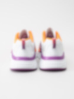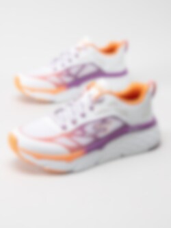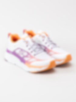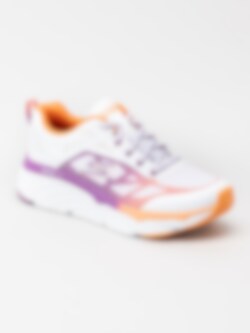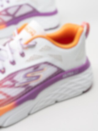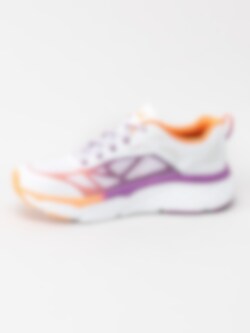 Vit sportskor Max Cushioning Elite från Skechers i stickad textil med härliga färgklickar i lila och orange. Passa på att njuta av vadderad komfort varje morgon med Skechers Max Cushioning Elite. Överdelen är i andningsbar stickad textil för ultimat komfort. Det tillsammans med den luftkylda innersulan Goga Mat som andas och ger dämpning. Ultra Go vadderad mellansula och med den tjocka yttersulan ger den ultimata sportskon för dig som gillar att vara ute och röra dig. Skon är tvättbar i maskin så du har alltid en fräsch sportsko. Denna sko piggar verkligen upp varje promenad.
