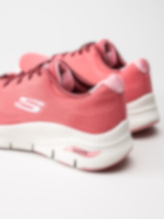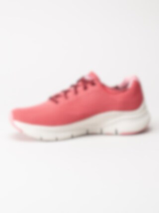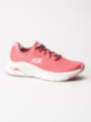 Rosa sportskor Arch Fit från Skechers tillverkade i textil. Utrustad med Arch Fit sul-system som gör att du får bra stöd under foten. Svart 5-håls snörning för att enkelt justera passformen. Löstagbar innersula i textil. Sköna skor för vårens alla promenader!