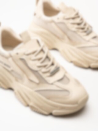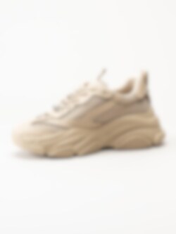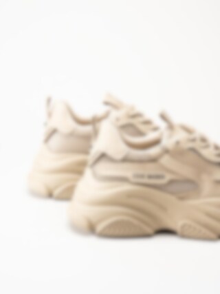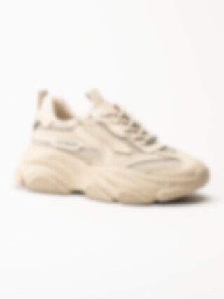 Beige chunky sneakers Possession i textil och syntet från Steve Madden. Skorna har en stor plattformssula och vadderad uppbyggnad som ger en skön känsla med lekfull attityd. Skorna är små i storleken, vi rekommenderar att man går upp en storlek.