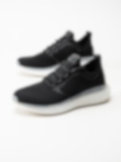 Svarta slip on sneakers i textil från Sweeks. Sköna sportskor med logga på sidan. Foder och löstagbar innersula i textil. Vit yttersula i syntet.
