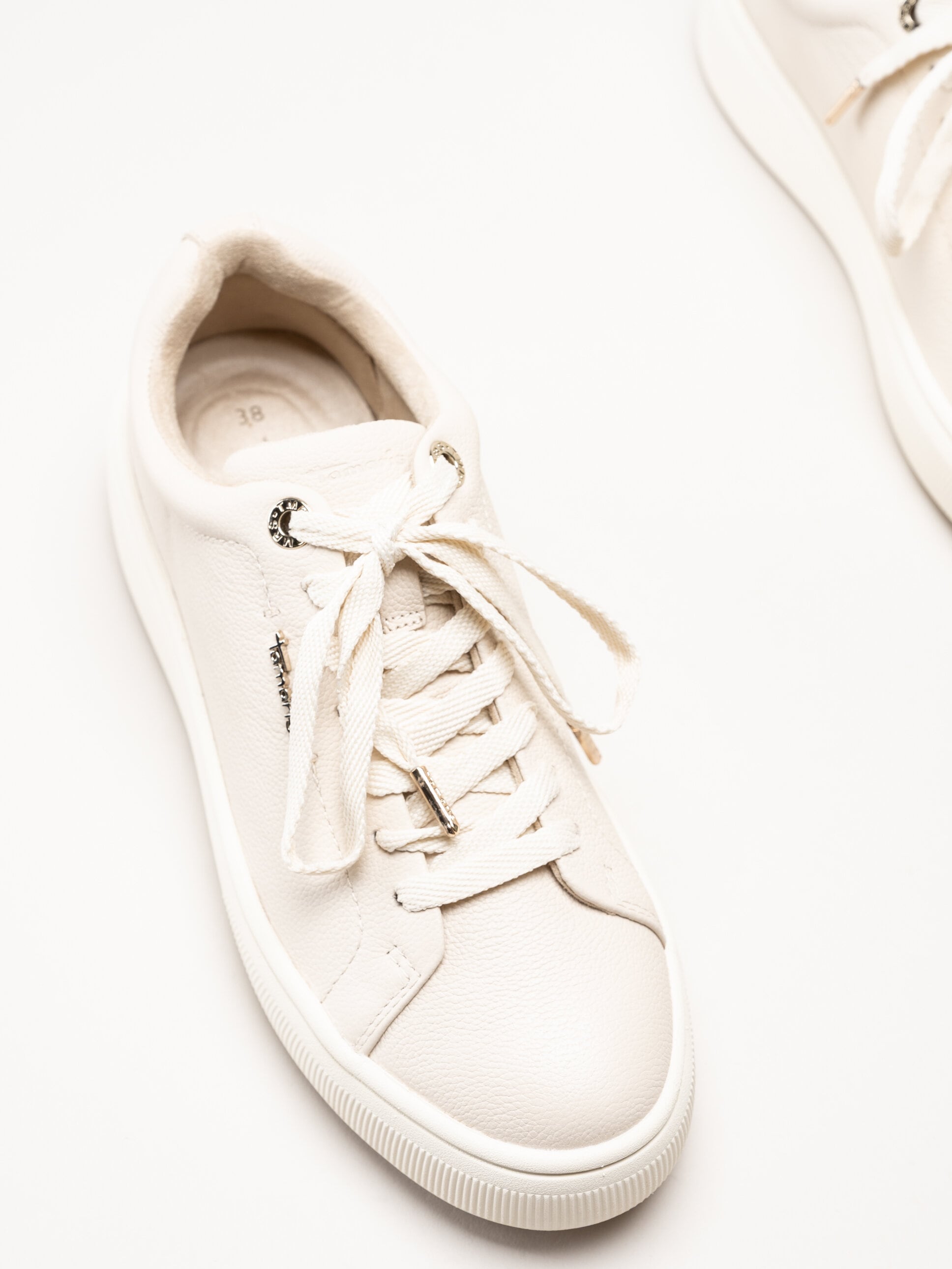 • Tamaris - Beige sneakers i skinn
