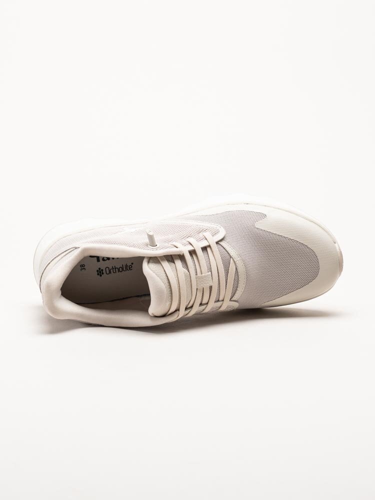 Beige sneakers i textil från Tamaris i färgen Ivory. Skorna är tillverkade i en lätt och ventilerande kombination av mesh och syntet som ger god luftcirkulation och ett modernt, sportigt uttryck. Invändigt är modellen fodrad med textil för en behaglig känsla mot foten, och den löstagbara innersulan med Ortholite-teknologi ger effektiv stötdämpning, god andningsförmåga och långvarig komfort. Innersulan formar sig efter foten och bidrar till en bekväm känsla även vid längre användning.