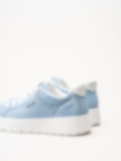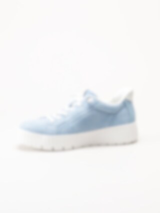 Ljusblå sneakers i mocka från Tamaris Comfort i färgen Light Blue. Skorna är tillverkade i mjuk mocka som ger ett stilrent och tidlöst uttryck. Modellen har en rymlig passform med H-läst och är utrustad med Step-In-funktion, det flexibla materialet i bakkappan i kombination med elastiska snören gör skorna extra enkla att ta av och på, utan att kompromissa med komforten. Invändigt är skorna fodrad med textil för en behaglig känsla mot foten, och den löstagbara innersulan i textil gör det smidigt att anpassa komforten eller byta sula vid behov. Yttersulan i slitstark gummiblandning bidrar med bra grepp och stabilitet i vardagen.