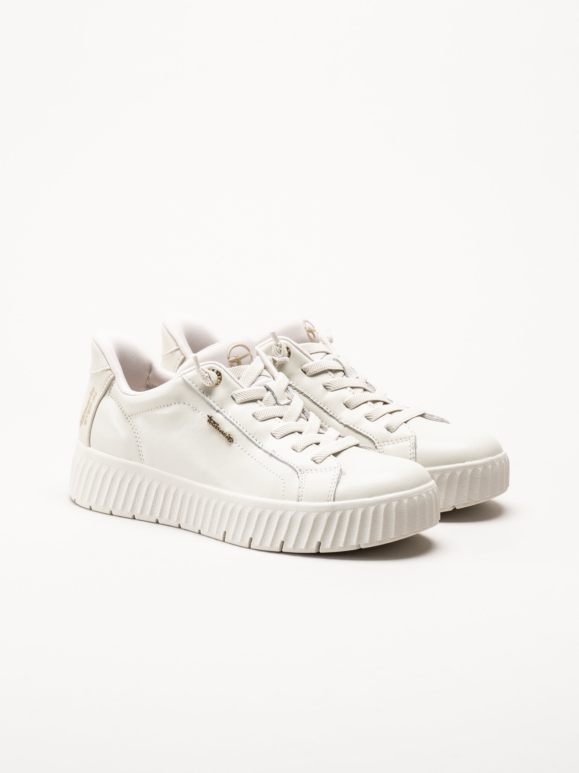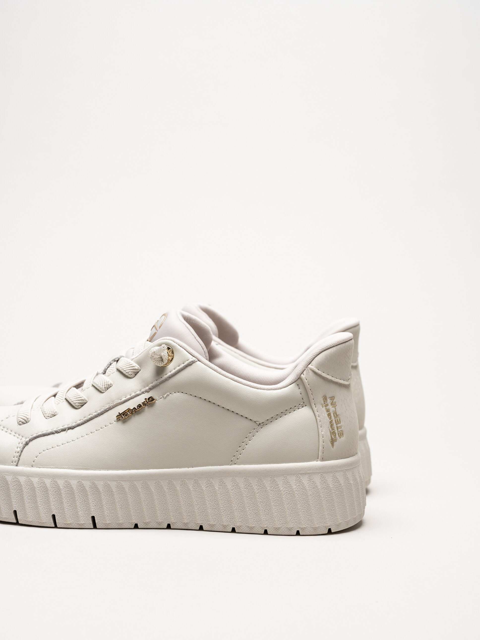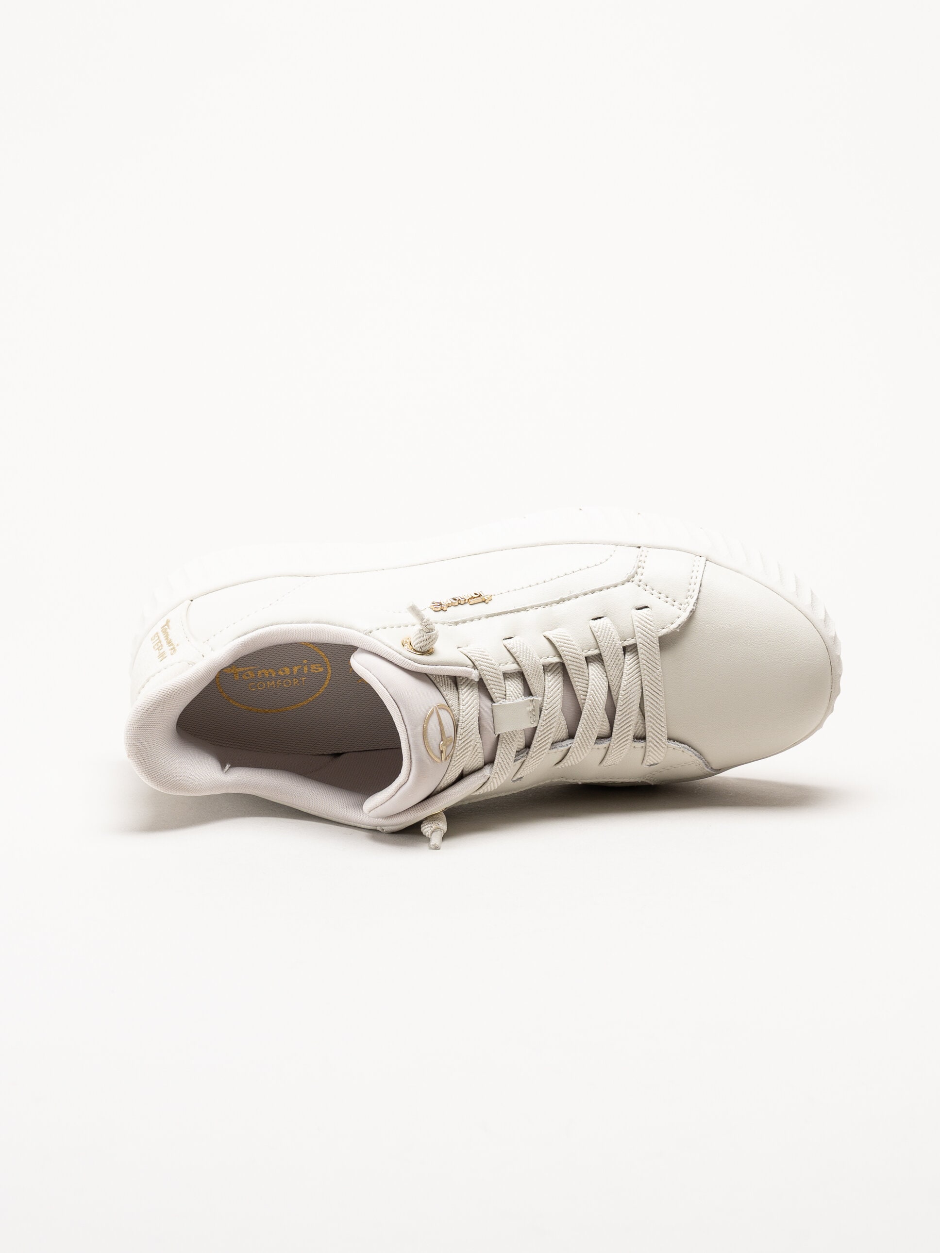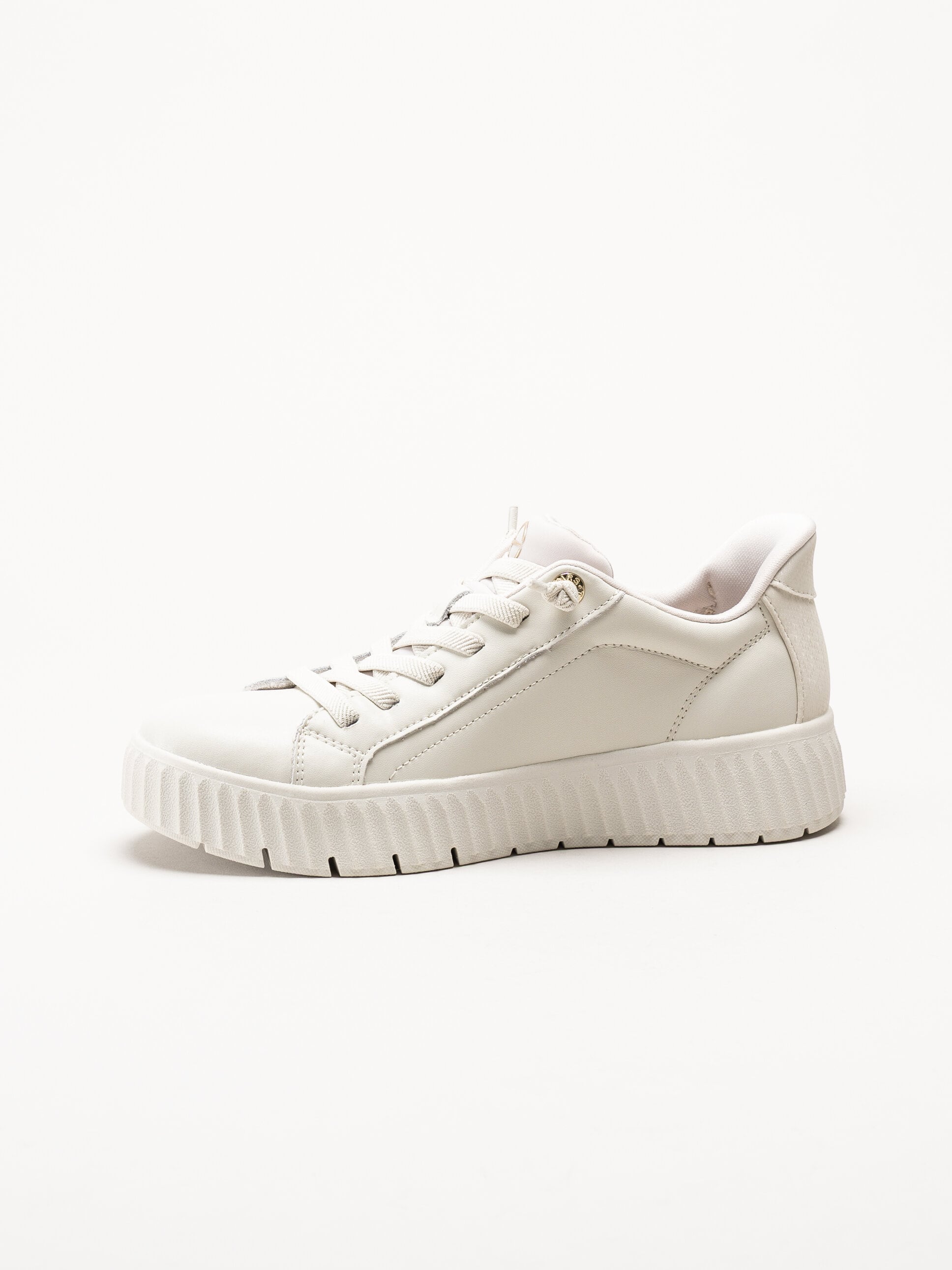 Vita sneakers i skinn från Tamaris Comfort i färgen Off White. Bekväma och stilrena sneakers designade för dig som prioriterar både komfort och funktion i vardagen. Ovandelen är tillverkad i en genomtänkt blandning av skinn, textil och syntet som ger en mjuk känsla, bra hållbarhet och ett fräscht uttryck.