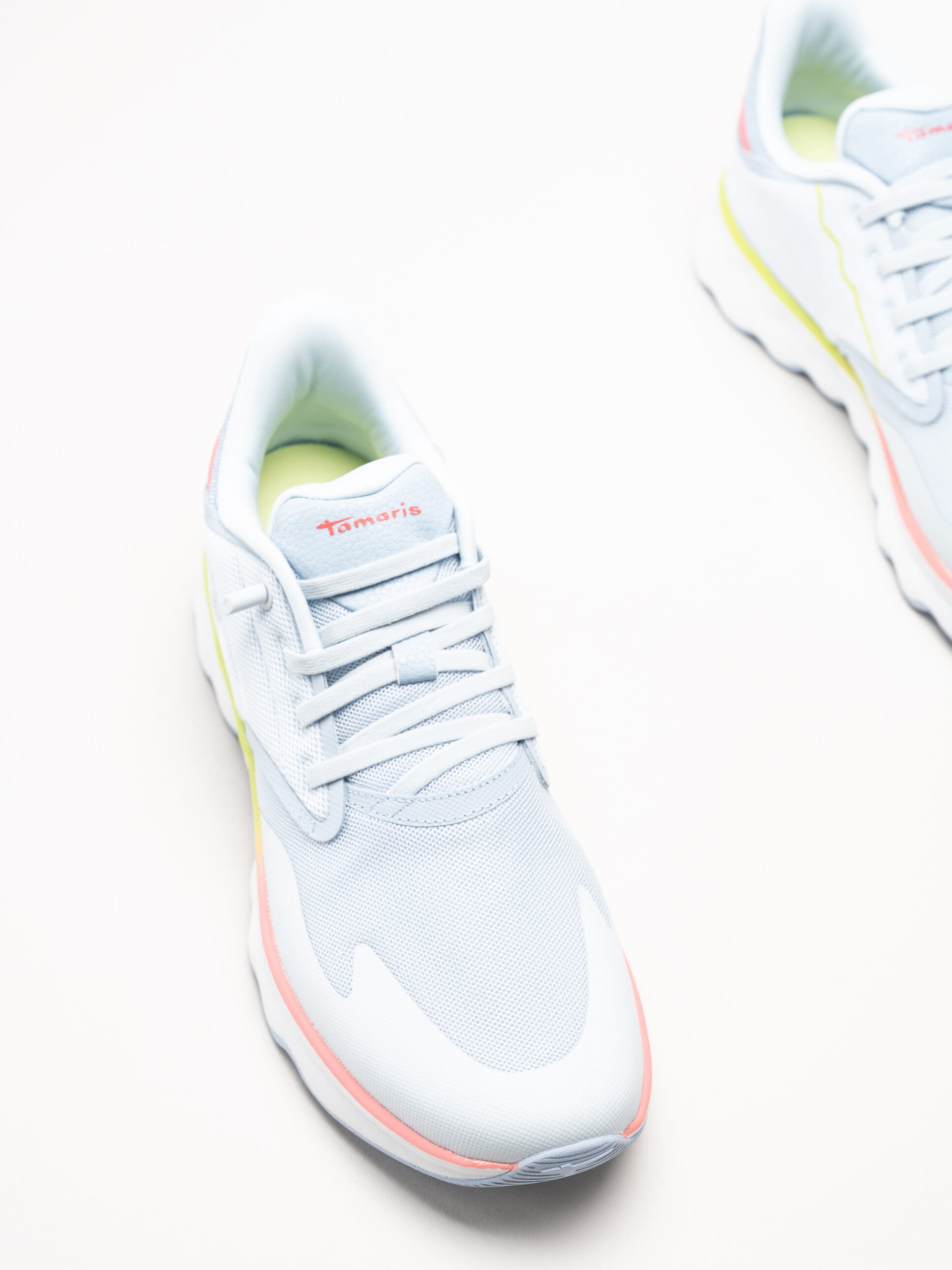 Ljusblå sneakers i mesh från Tamaris. Skorna är tillverkade i lätt och ventilerande mesh kombinerat med syntet, vilket ger en sportig, modern och mjuk känsla.