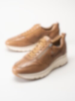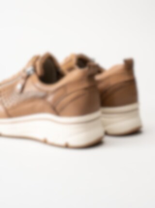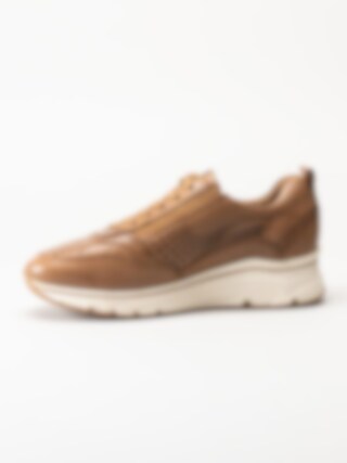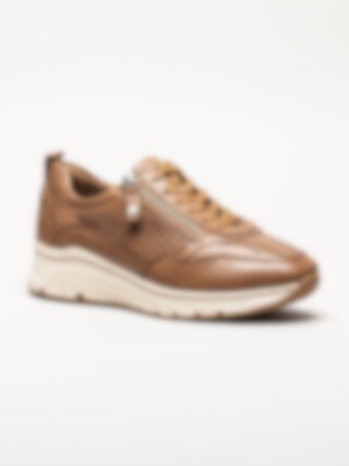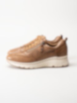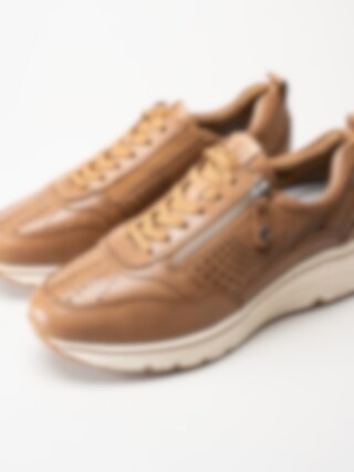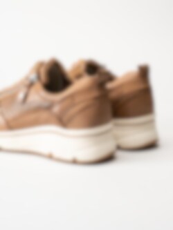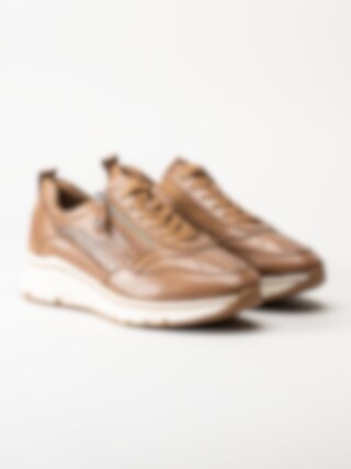 Tamaris - Ljusbruna kilklackade sneakers i skinn