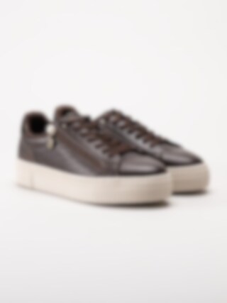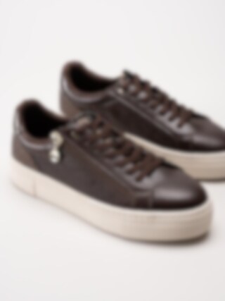 Tamaris - Mörkbruna sneakers i skinnimitation