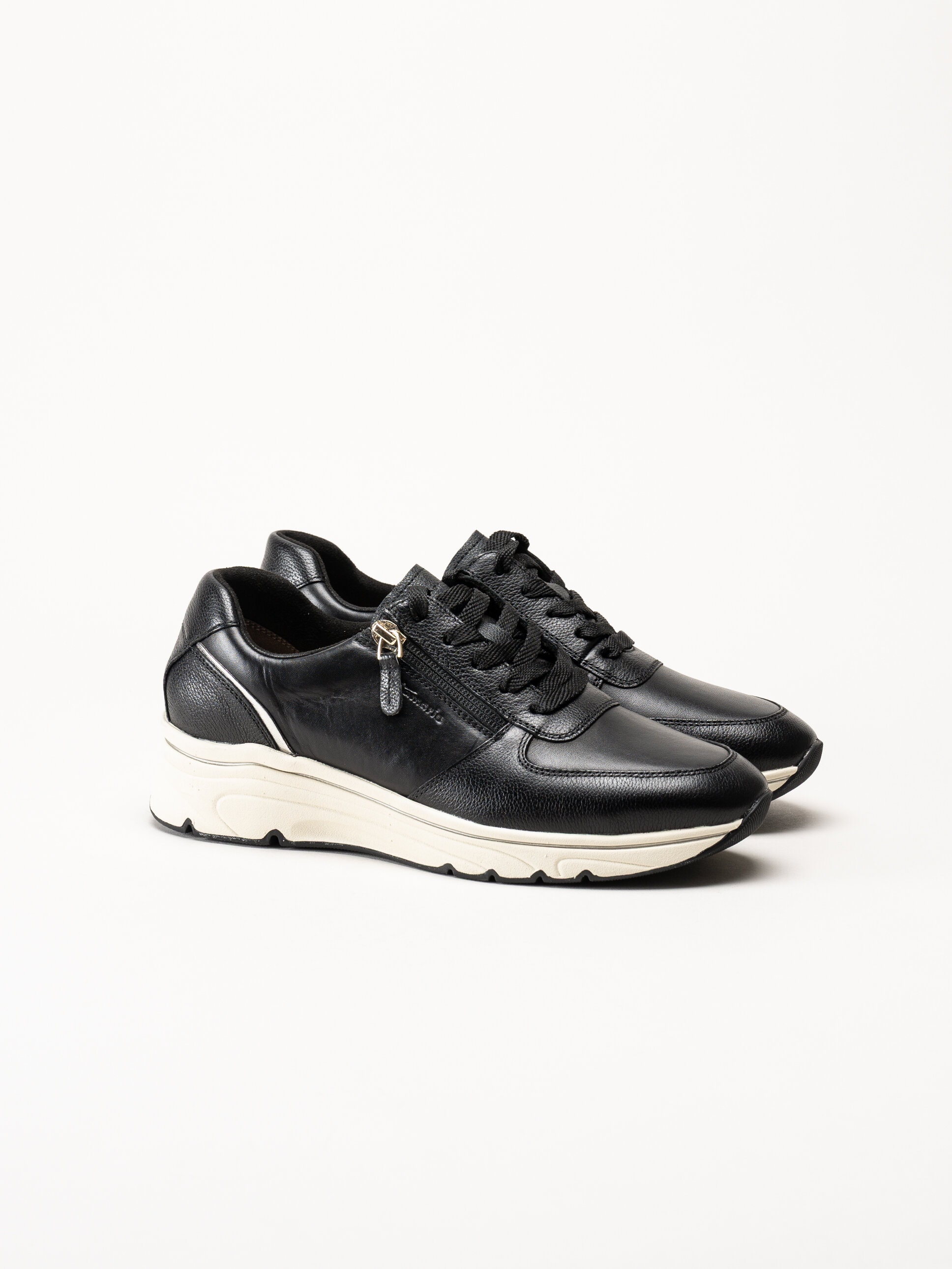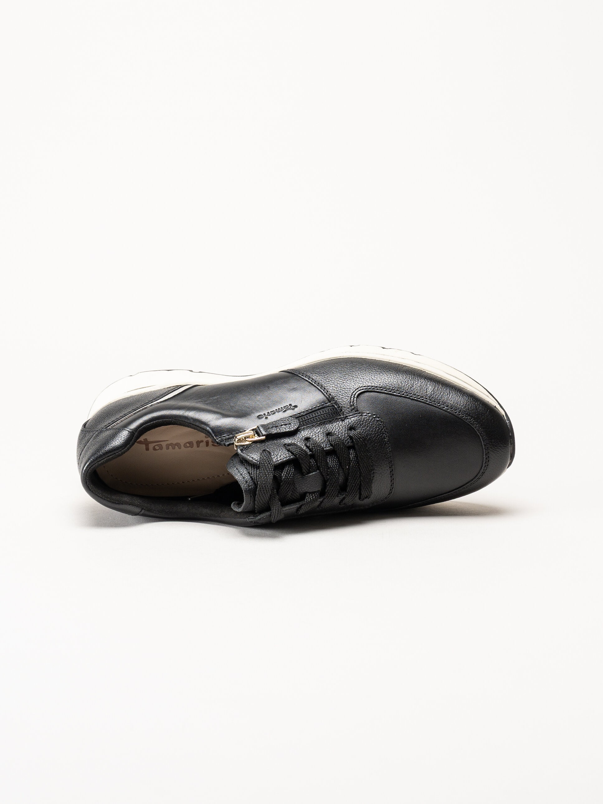 Tamaris - Svarta sneakers i skinn