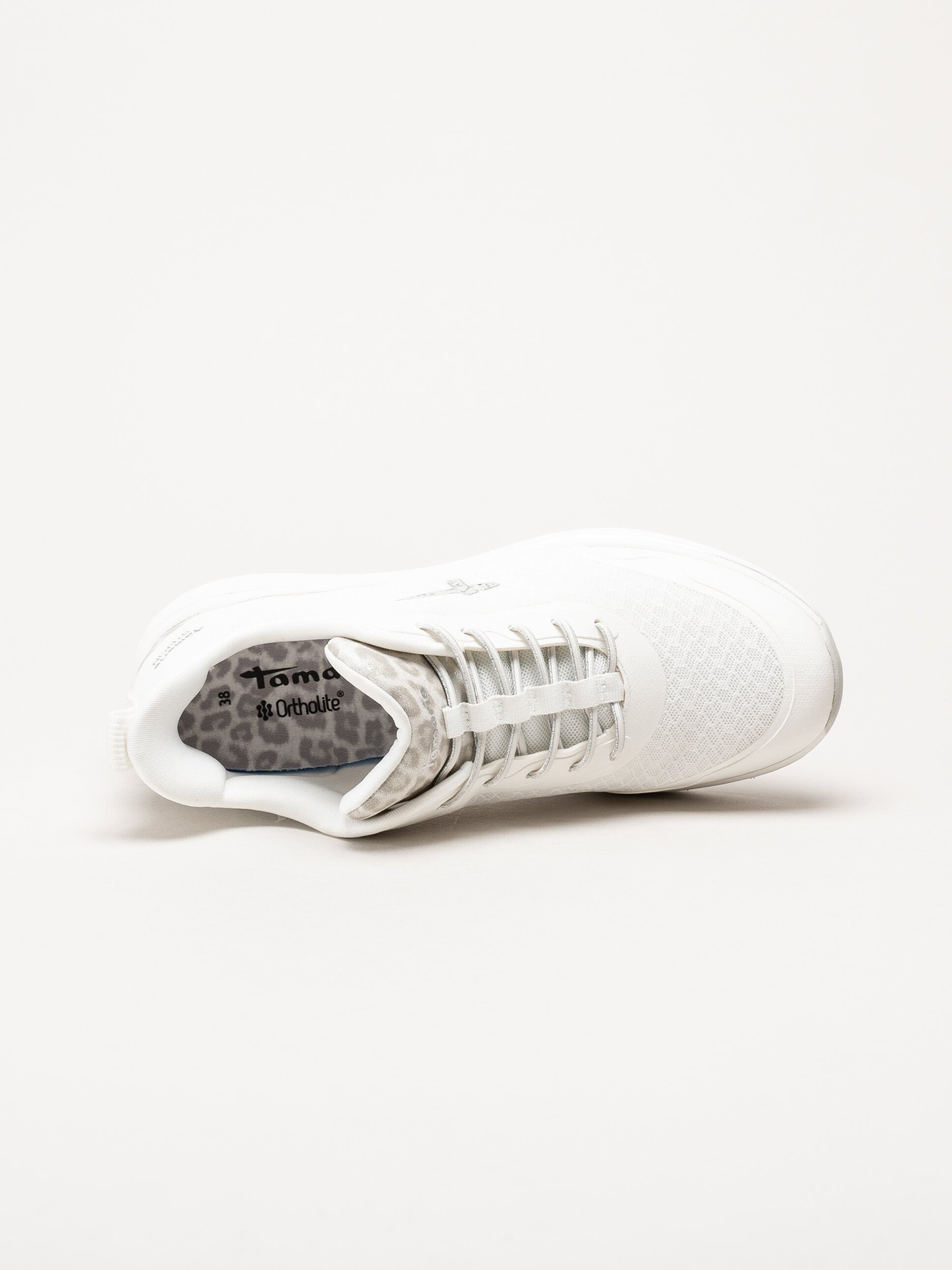 Vita sneakers med kilklack från Tamaris. Denna kilklacksmodell är framställd i en kombination av mesh och syntet som ger en sportig och modern look samtidigt som materialet är lätt och följsamt. Den klassiska snörningen framtill ger en justerbar passform, och den flexibla konstruktionen baktill gör dem extra smidiga att ta på och av tack vare Tamaris Step-In-funktion.