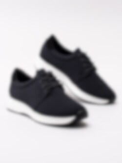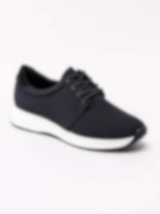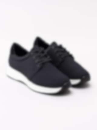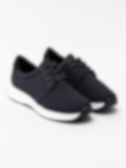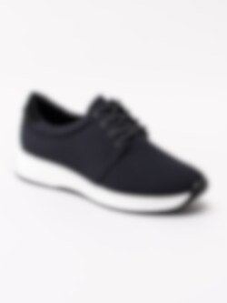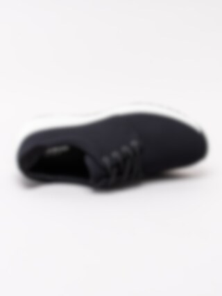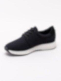 Svarta sportiga sneakers Cintia från Vagabond tillverkade i stickad textil. Stilren modell med rund 4-håls snörning. Ljust textilfodrad med mjuk, vadderad skinnsula. Clean sneakers som passar både till jeans som till barbent. Vit sula med 3.5 cm klack med svart yttersula.