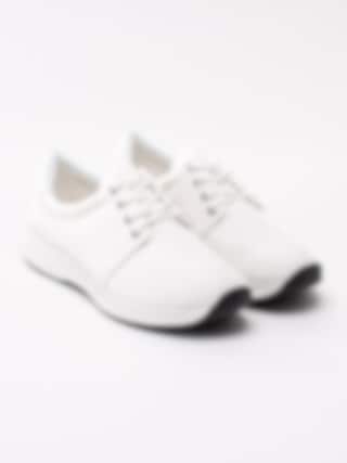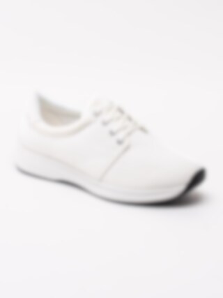 Vita sportiga sneakers Cintia från Vagabond tillverkade i stickad textil. Stilren modell med rund 4-håls snörning. Ljust textilfodrad med mjuk, vadderad skinnsula. Clean sneakers som passar både till jeans som till barbent. Vit sula med 3.5 cm klack med svart yttersula.