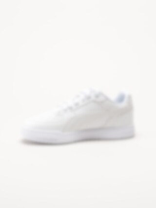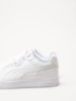 Vita sneakers i skinnimitation Caven III från Puma. Skorna är tillverkade i slitstarkt och lätt syntetmaterial som ger ett sportigt och stilrent uttryck med klassisk sneakerdesign. Invändigt är modellen fodrade med textil för en mjuk och behaglig känsla mot foten, och den löstagbara innersulan i textil gör det enkelt att anpassa komforten eller byta sula vid behov. Klassisk snörning ger en justerbar och stabil passform.