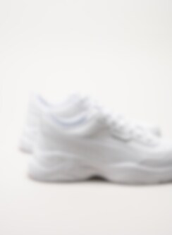 Vita sneakers i skinnimitation Cilia Mode från Puma i färgen Puma White. Skorna är tillverkade i lätt och slitstarkt syntetmaterial som ger ett modernt och sportigt uttryck. Den trendiga chunky-sulan ger både karaktär och komfort, samtidigt som den skapar en snygg och uppdaterad silhuett.